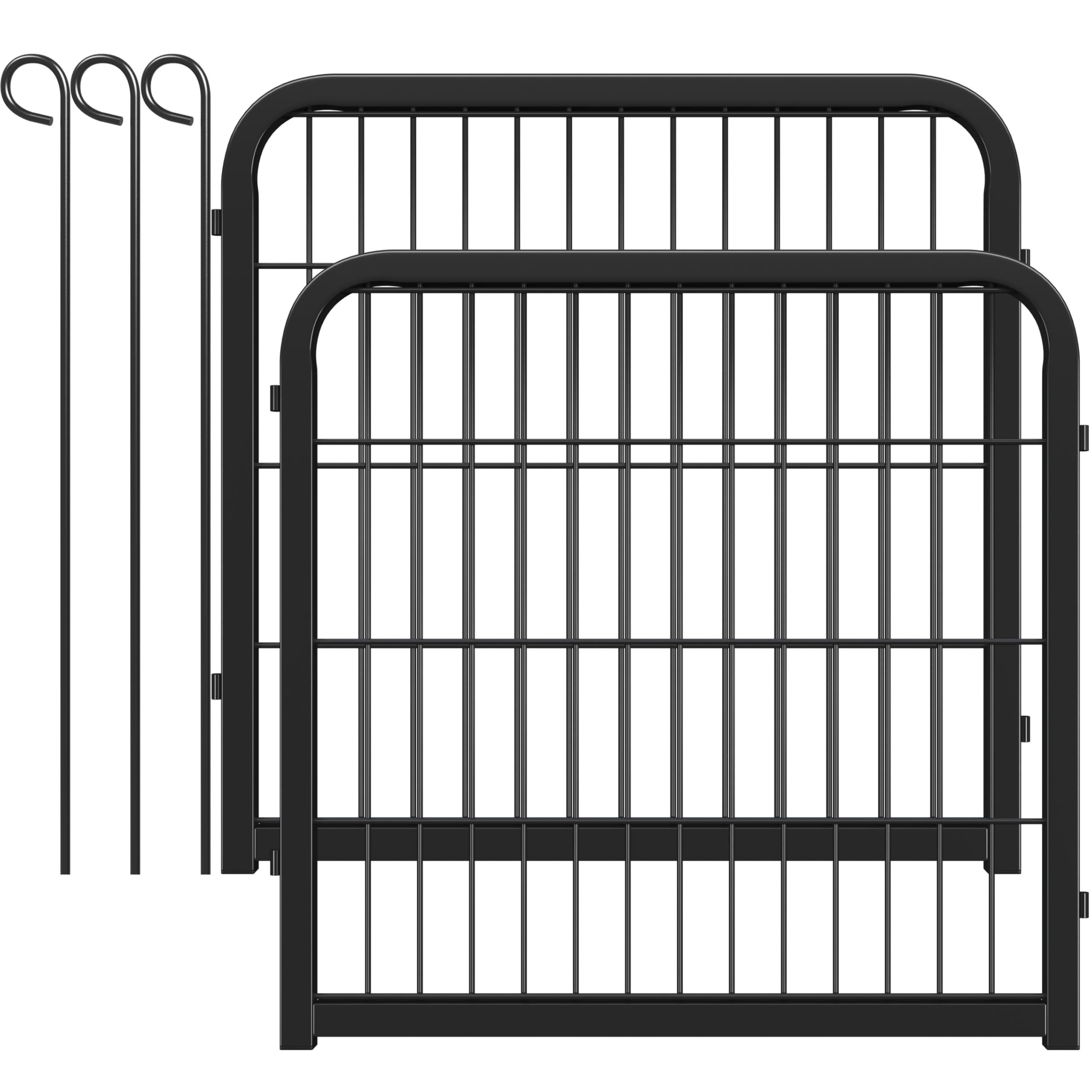 Heavy duty: The dog playpen is made of metal with a black coating. Recommend set this playpen on flat ground. The metal playpen is free-standing, however, if you have a naughty puppy, you might secure the playpen to the ground firmly for double safety