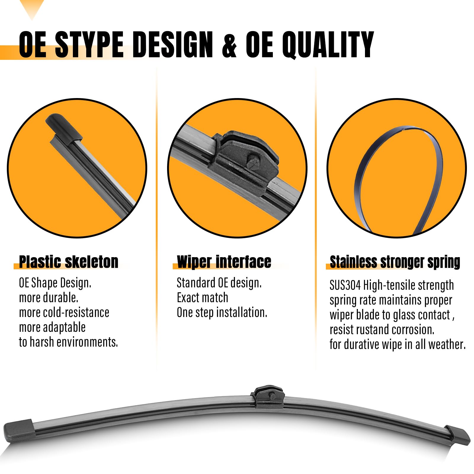 100% Brand New , All-weather and all-Season OEM quality windshield wiper blades ,Long life,Smooth engagement