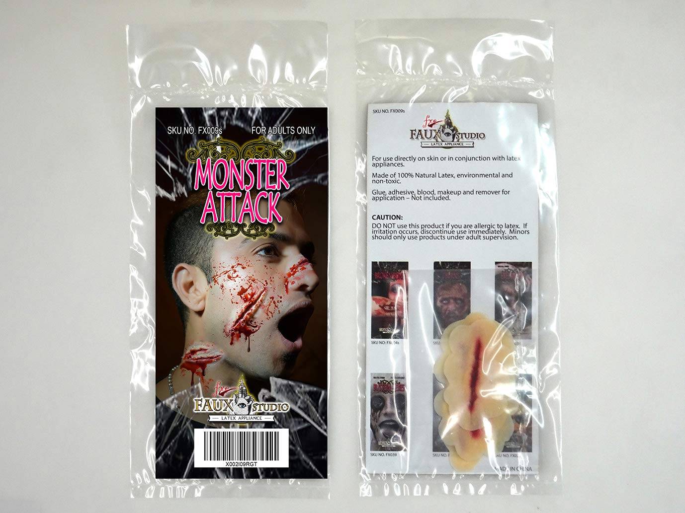 Description Package Contains 3 Piece Pre-Painted Monster Attack Wounds Prosthetic Appliance. Finish with blood and cream makeup for a professional look. (Spirit Gum, prosthetic adhesive, blood, makeup and remover for application – Not included.) Best Choice for a fun Halloween, Carnival, Costume parties and other party occasions, it can create a joyful or terrifying atmosphere for a party. Anyway, it will see plenty of use at times other than Halloween.