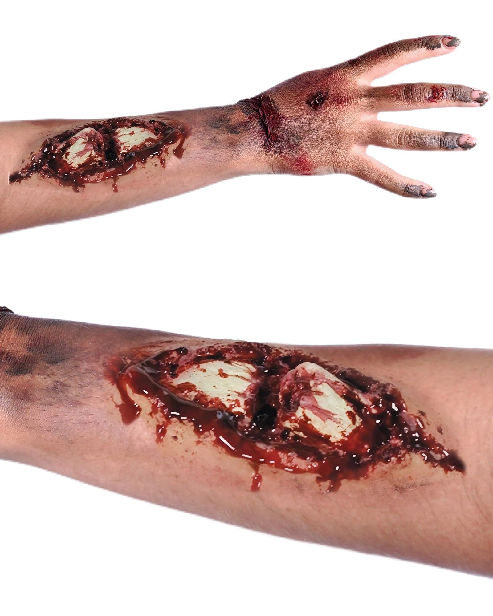 Realistic Injury looks, they are waterproof. Finish with blood and cream makeup for a professional look. (Spirit Gum, prosthetic adhesive, blood, makeup, and remover for application are Not included.)