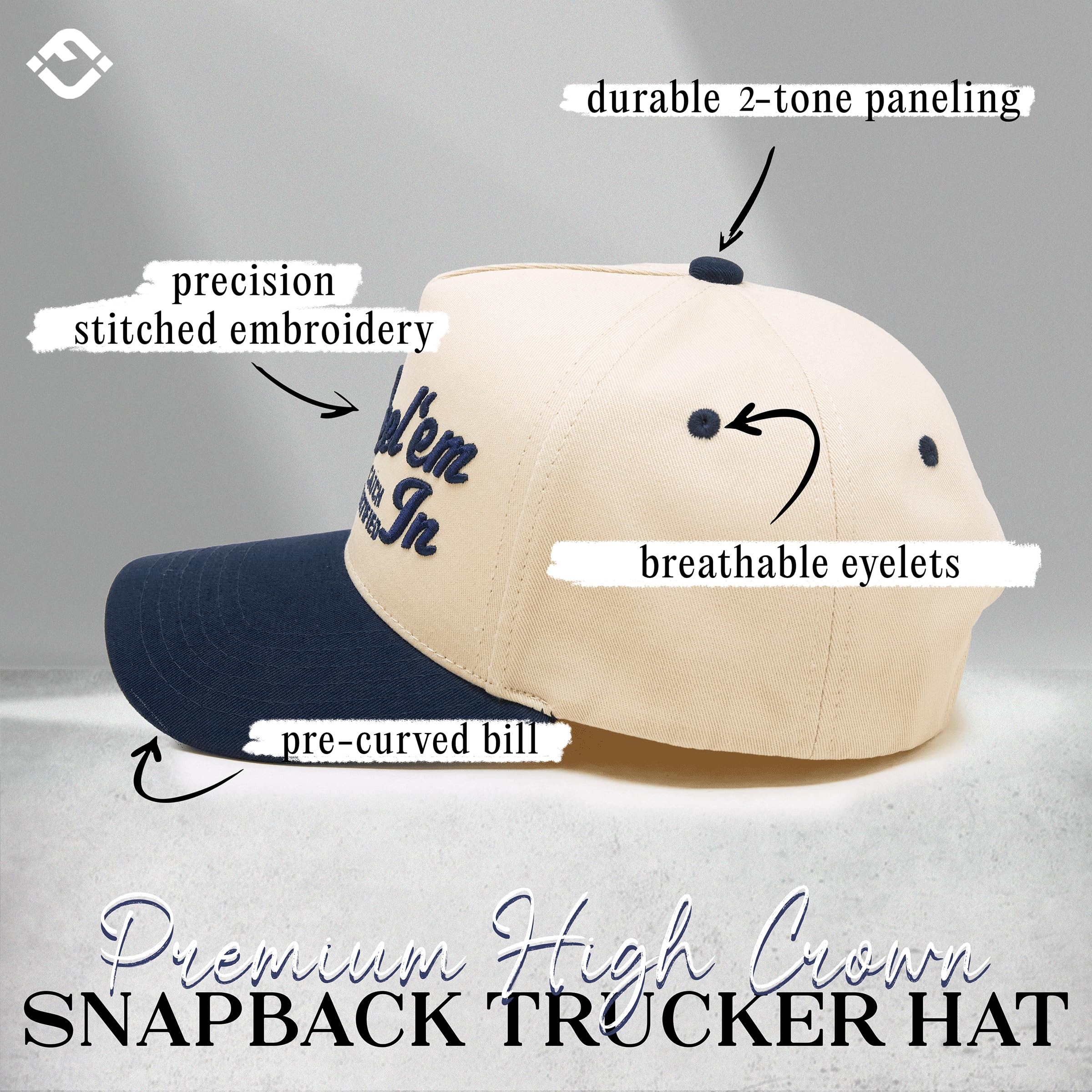 GREAT QUALITY: These two-tone retro baseball caps are 35% cotton and 65% polyester, ensuring a soft, comfortable fit, while also providing durability and breathability. This 5 panel structured hat boast high-quality, detailed embroidery designs, adding a touch of elegance and sophistication to any occasion. Despite their structured design, these hats offer a lightweight feel that contributes to their comfort and suitability for extended wear. Hand wash only.