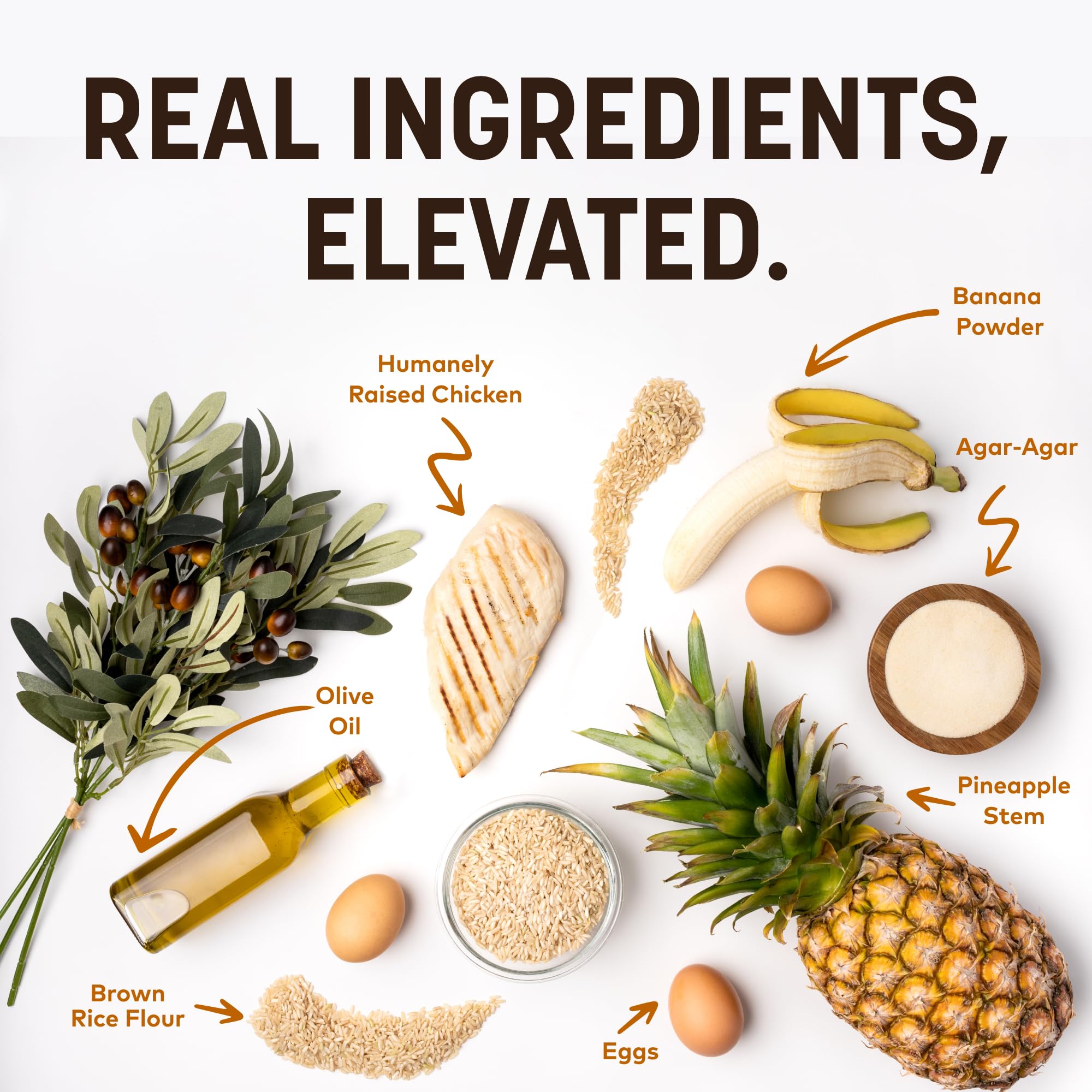 MADE WITHOUT: No bleach. No synthetics. No foul odor. Each No-Hide starts with simple ingredients - brown rice flour, agar-agar, eggs, olive oil, banana powder, & pineapple stem. After adding a flavorful protein, they're baked to perfection