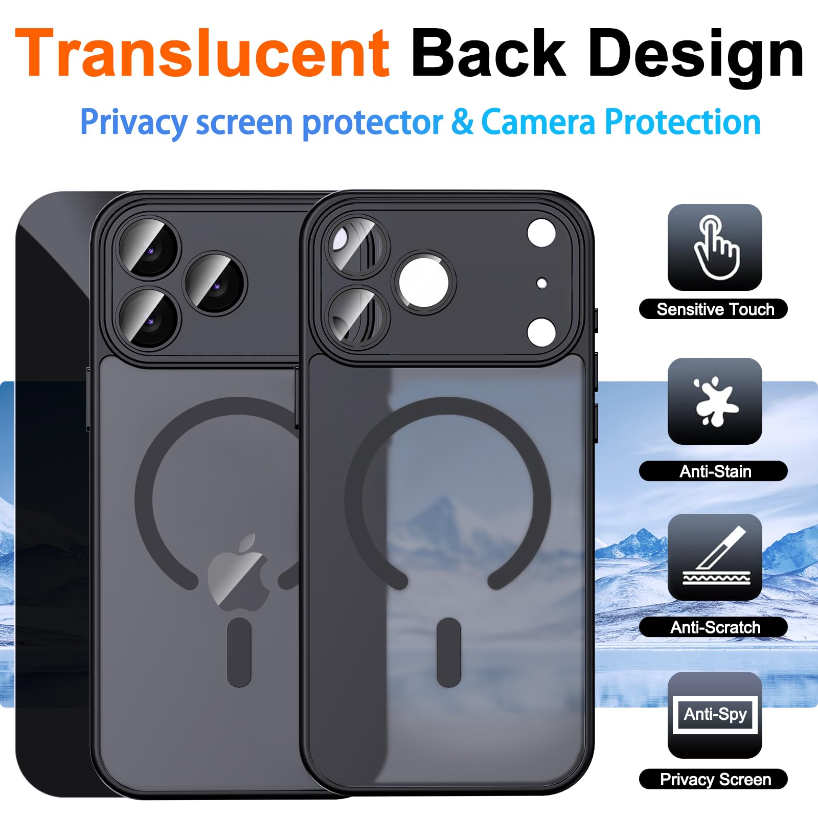 [Compatible Models] This for iPhone 17 Pro case black with privacy screen protector and camera protection, provide all-round protection for your iPhone 17 Pro 6.3 inch.