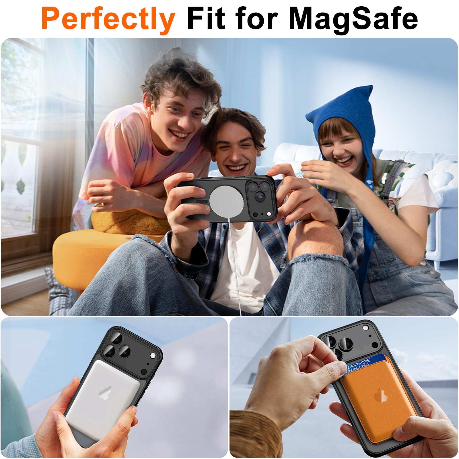 [Powerful Magnetic Strength] for iPhone 17 Pro case magnetic compatible with MagSafe all accessories such as power banks, wireless chargers, car mounts, wallets, magnetic profile ensures that the charger and car mount are firmly fixed.