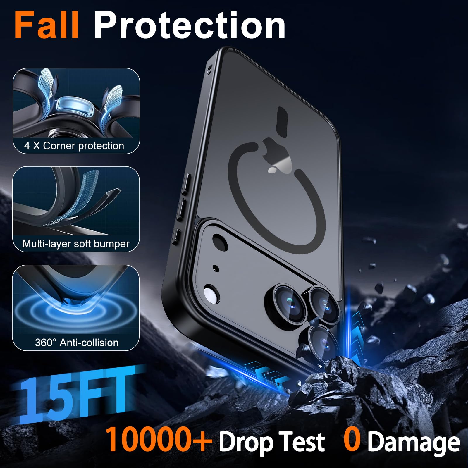 [Fall Protection] This for iPhone 17 Pro shockproof protective case cushioning with a four-layer cushioning structure, with airbags inside, for iPhone 17 Pro case protective provides excellent protection to your phone from up to 15 FT drop; The 1.5 mm bezels and raised 2.5 mm camera hole lips protect your device from impact and scratches.