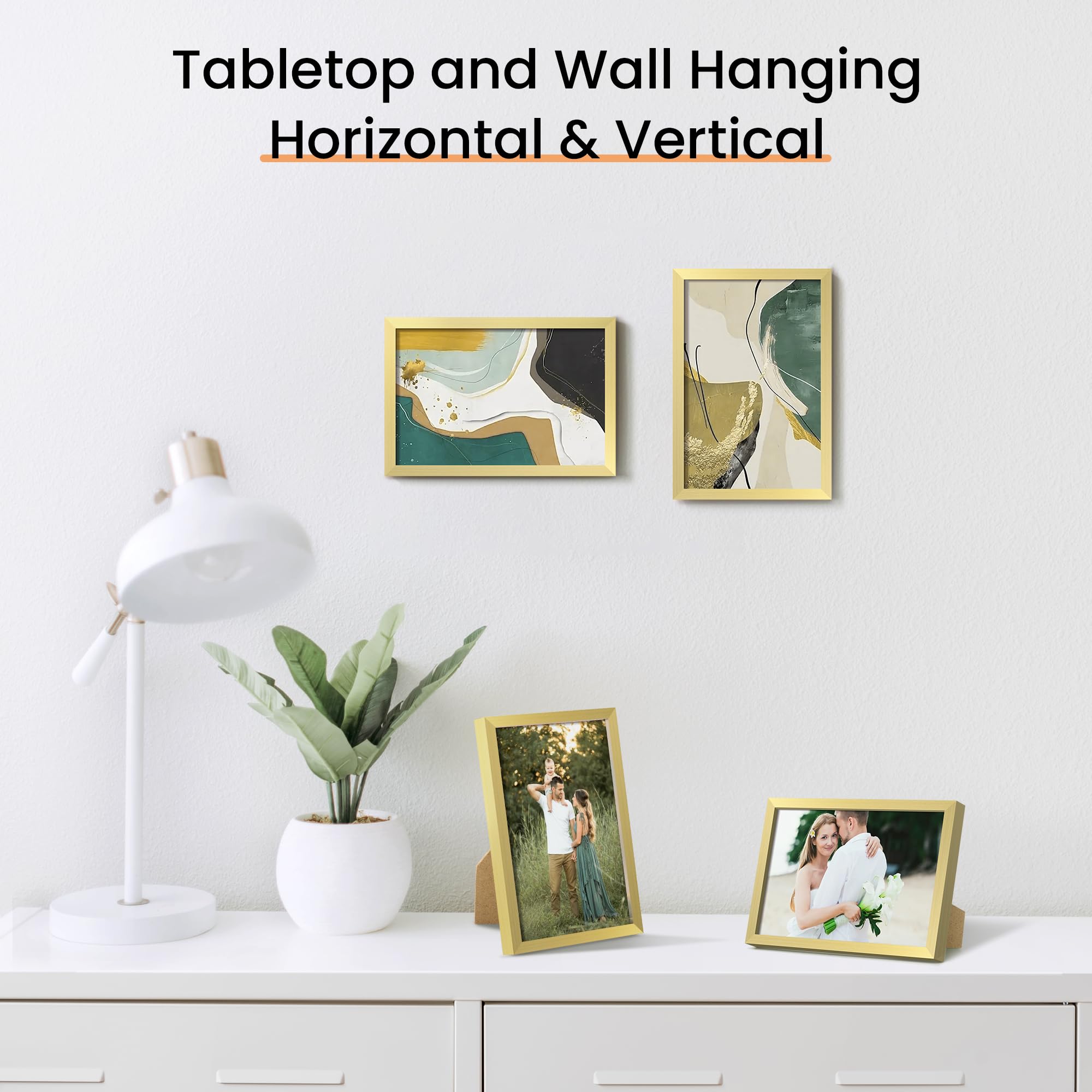 Size: One wall gold photo frame fits 4x6 photo without mat, can be hung horizontally or vertically.