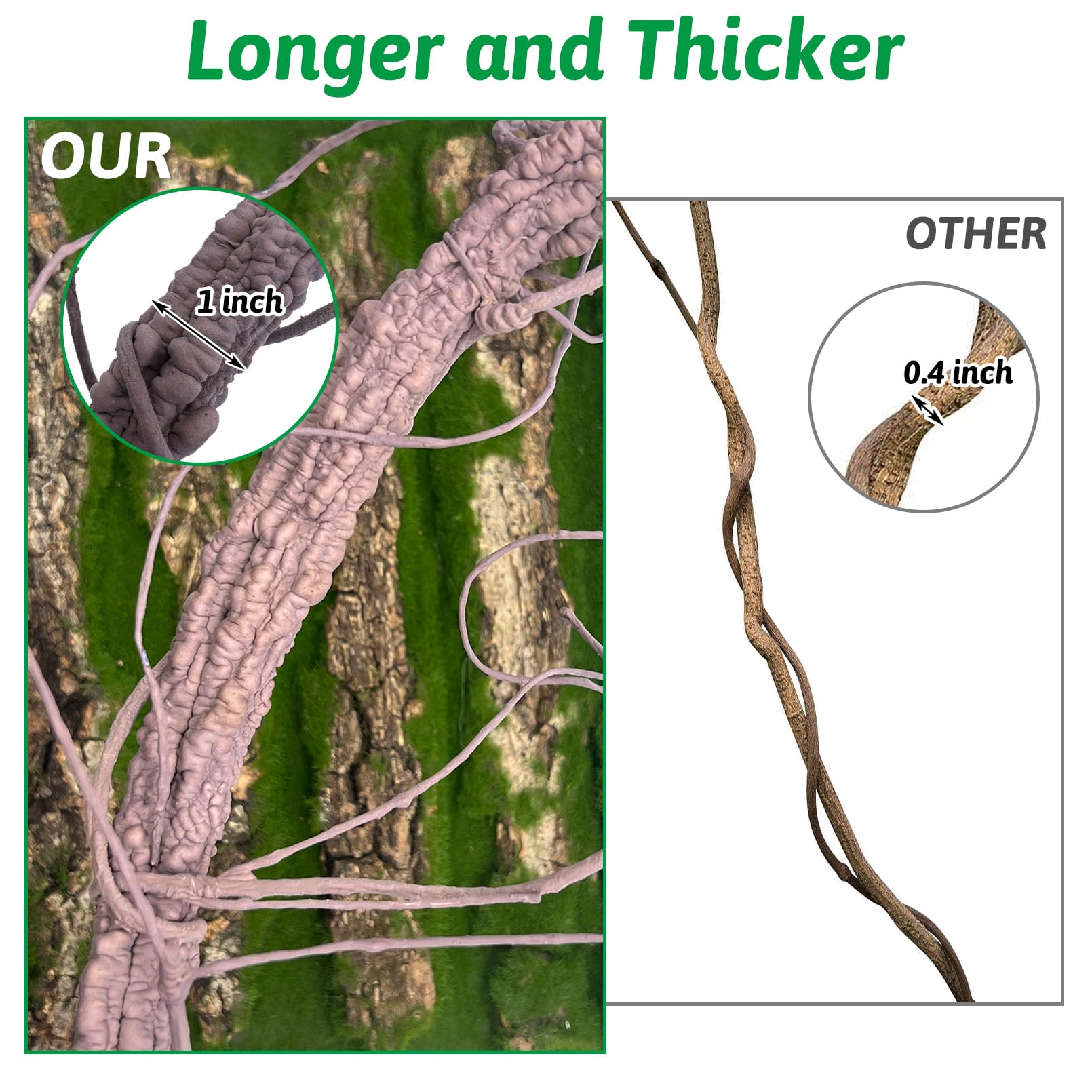 Long and Thick: Long artificial vines are not only long but also thick, able to give reptiles some support when climbing. Thick vines for reptile can provide resting and hiding places to increase their activity and maintain good health
