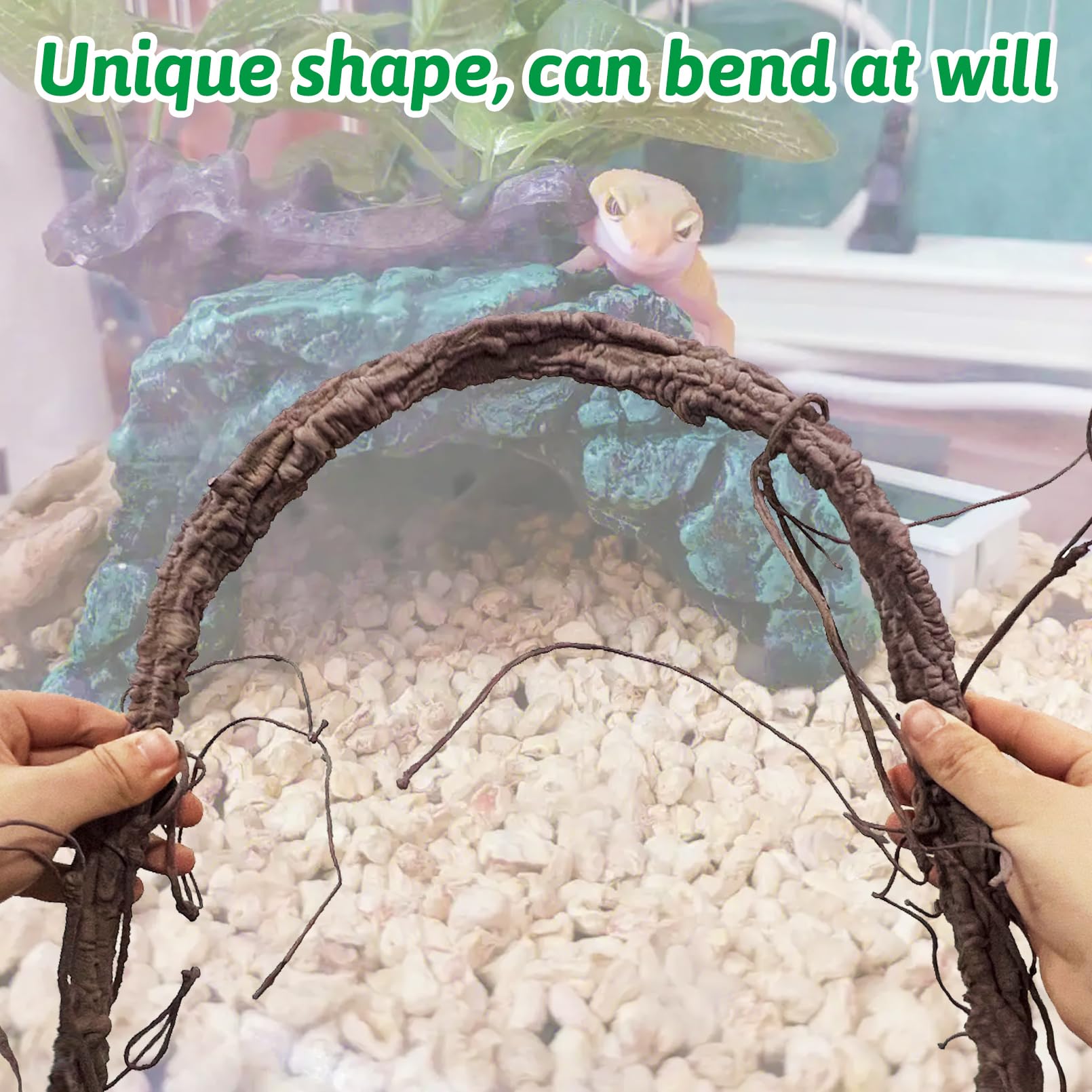 Safe Material: Reptile jungle vines, inside is metal wire, outside is soft PU material, can be bent at will, suitable for all types of pet enclosures. You can DIY the shape you want to create rich habitat space and climbing paths