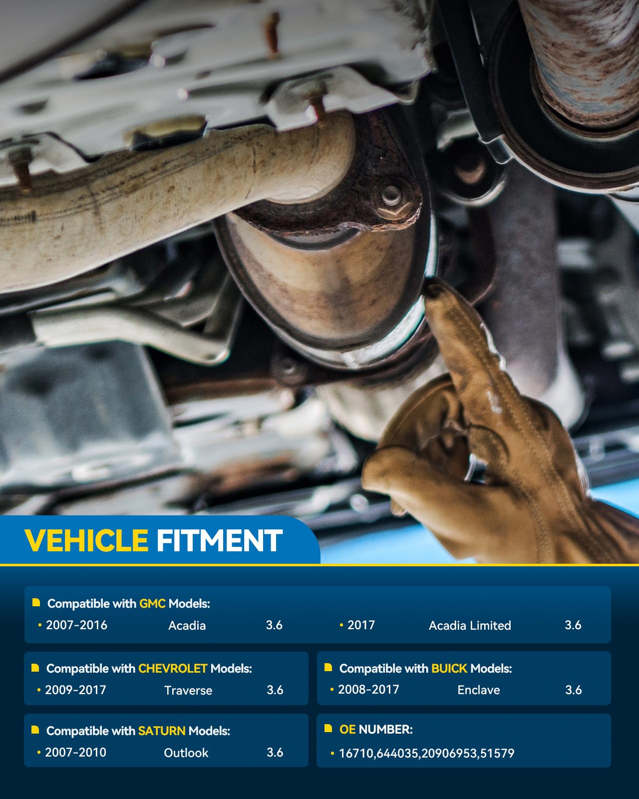 Vehicle Fitment: PHILTOP Direct-Fit Catalytic Converter Compatible with Chevrolet, GMC, Buick, Saturn Traverse 3.6L 2009-2017, Acadia 3.6L 2007-2016, Enclave 3.6L 2008-2017, Outlook 3.6L 2007-2010, Acadia Limited 3.6L 2017