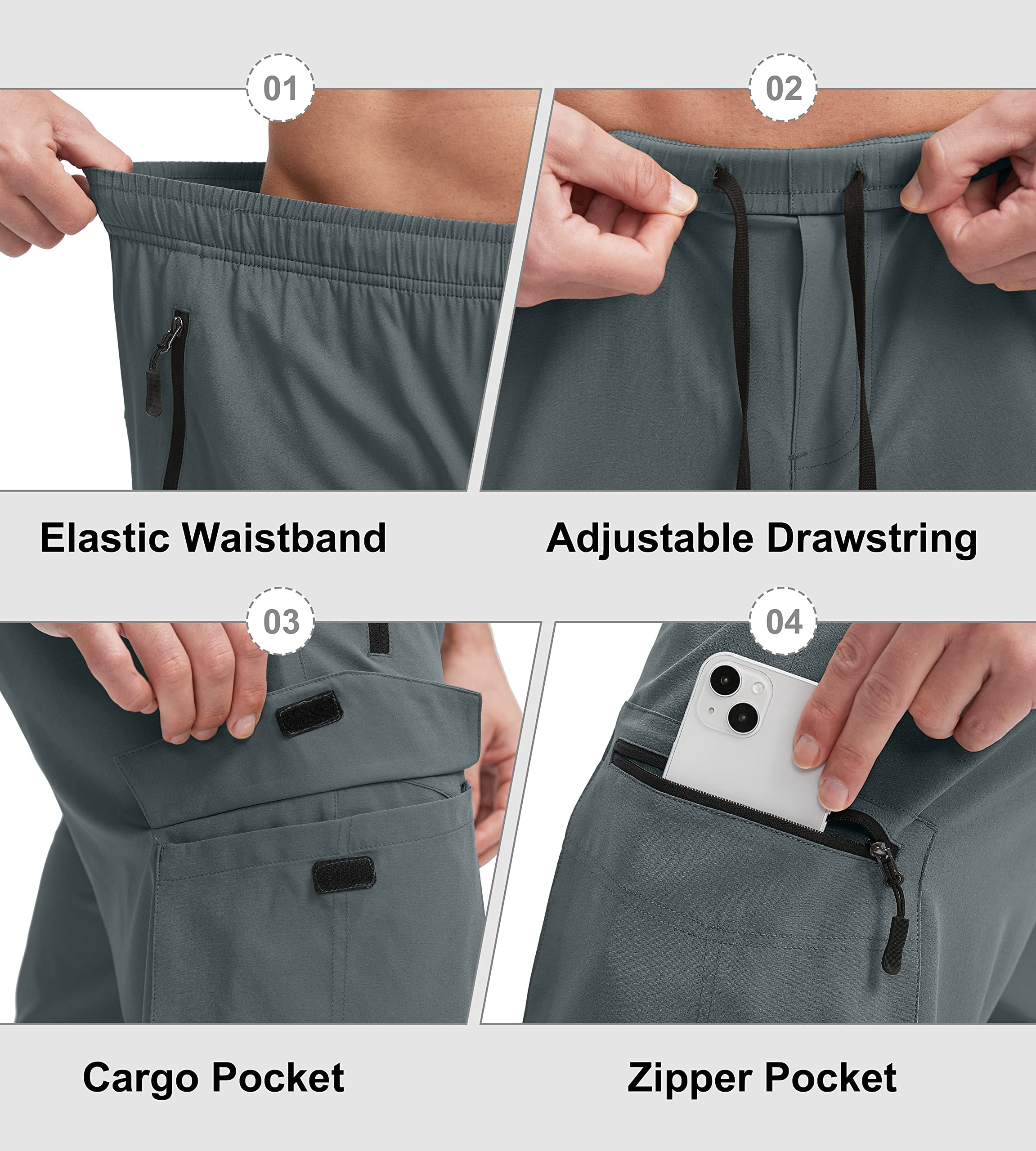 Multily Pockets: Total of four well-made and designed pockets provide a ton of storage, two side zipper pockets, one left thigh zipper and one right thigh cargo pocket keep your phone, wallet secured during biking.