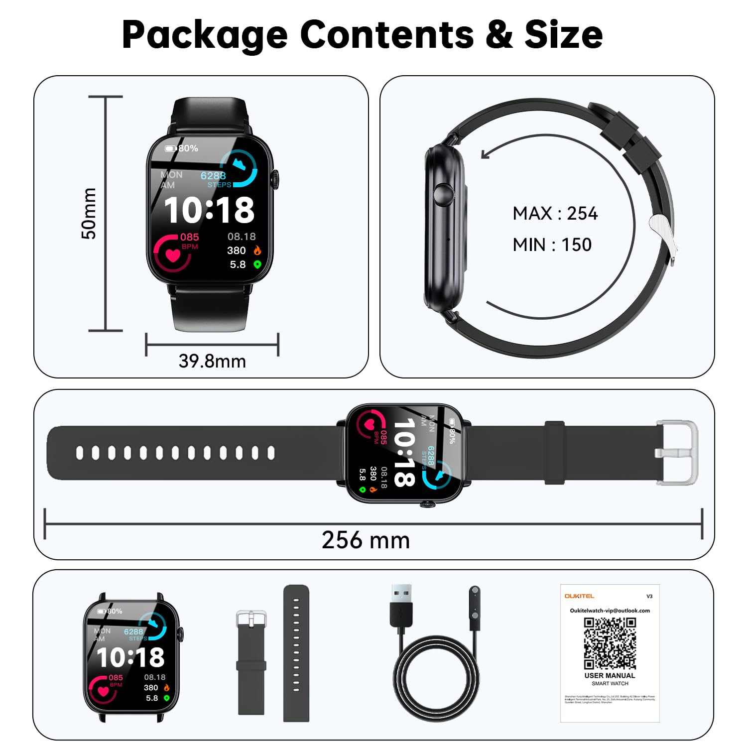 iOS & Android Compatibility: Smart watch compatible with Android 6.0+ and IOS 10.0+ and above devices. receive notifications for calls, texts, and apps (Note: Compatible with message notifications but does not support replies)