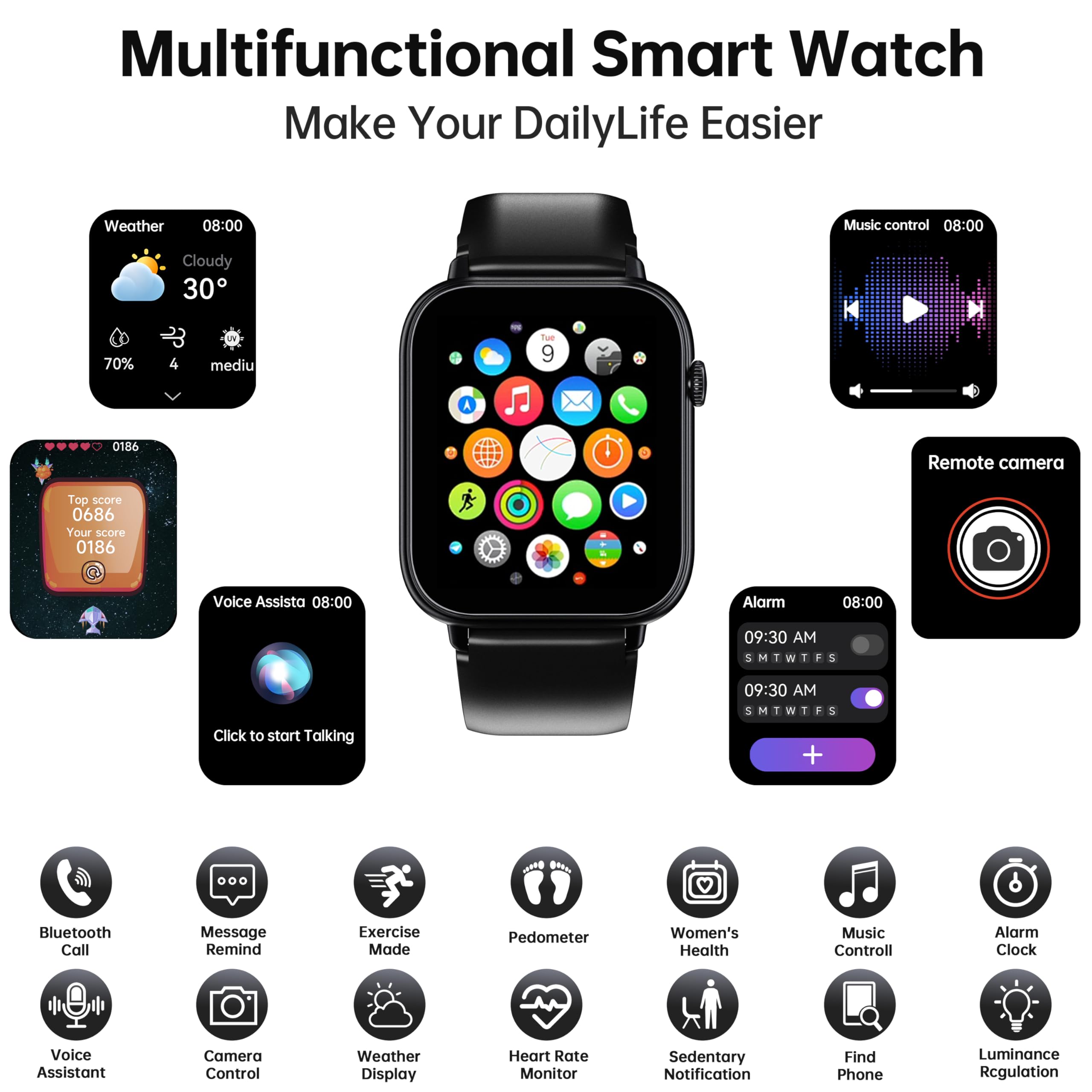 Multi-functional Smartwatch: Fitness tracker is equipped with basic functions such as voice assistant, weather forecast, camera and music control, customized dials, with its multifunctionality, this watch makes your every day easier, and more productive