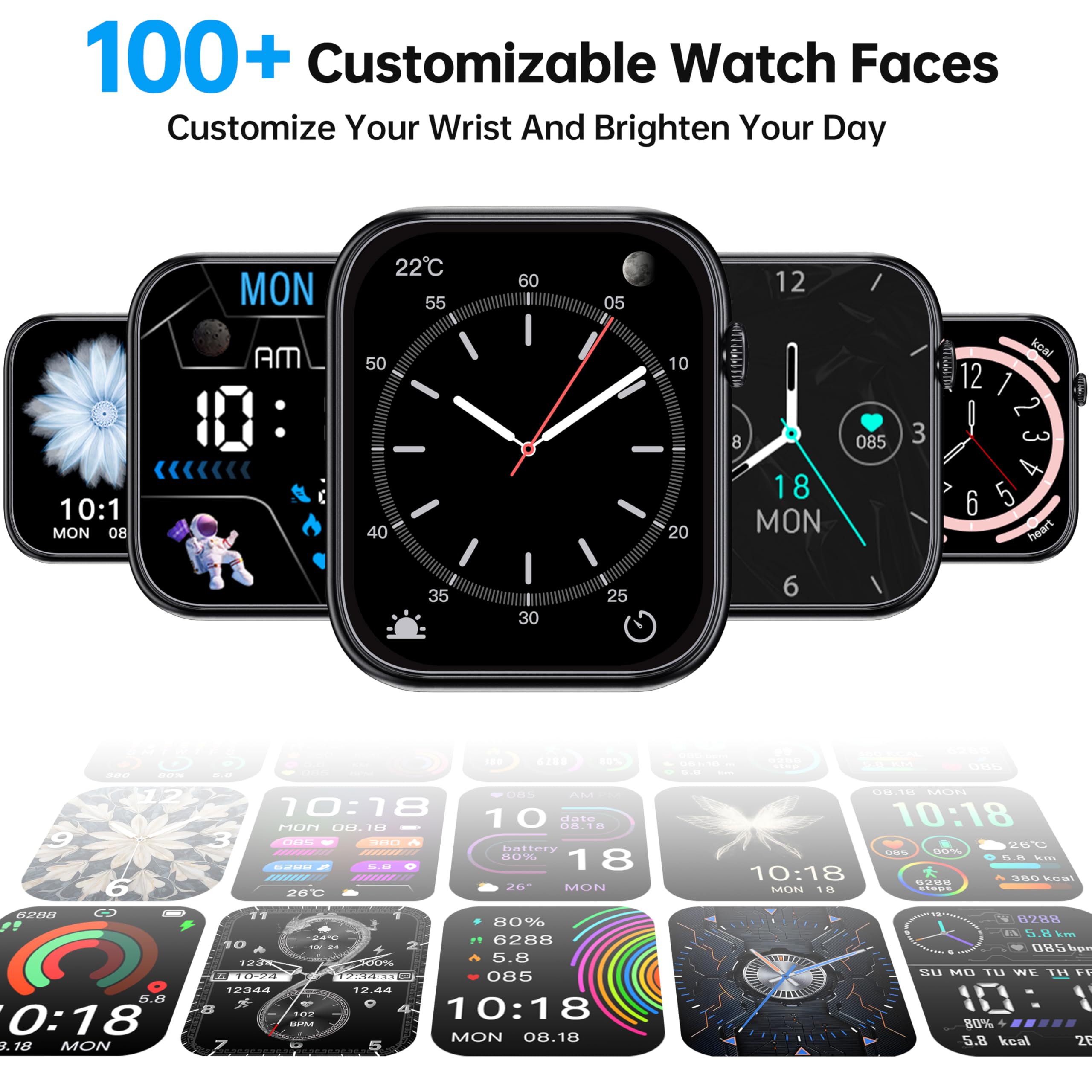 1.83"HD Touch and DIY Dials: Smartwatch let you have different touch screen watch experience, watch smart light up the screen for your use, equipped with 100+screens for you to choose, you can also DIY unique fitness tracker screen