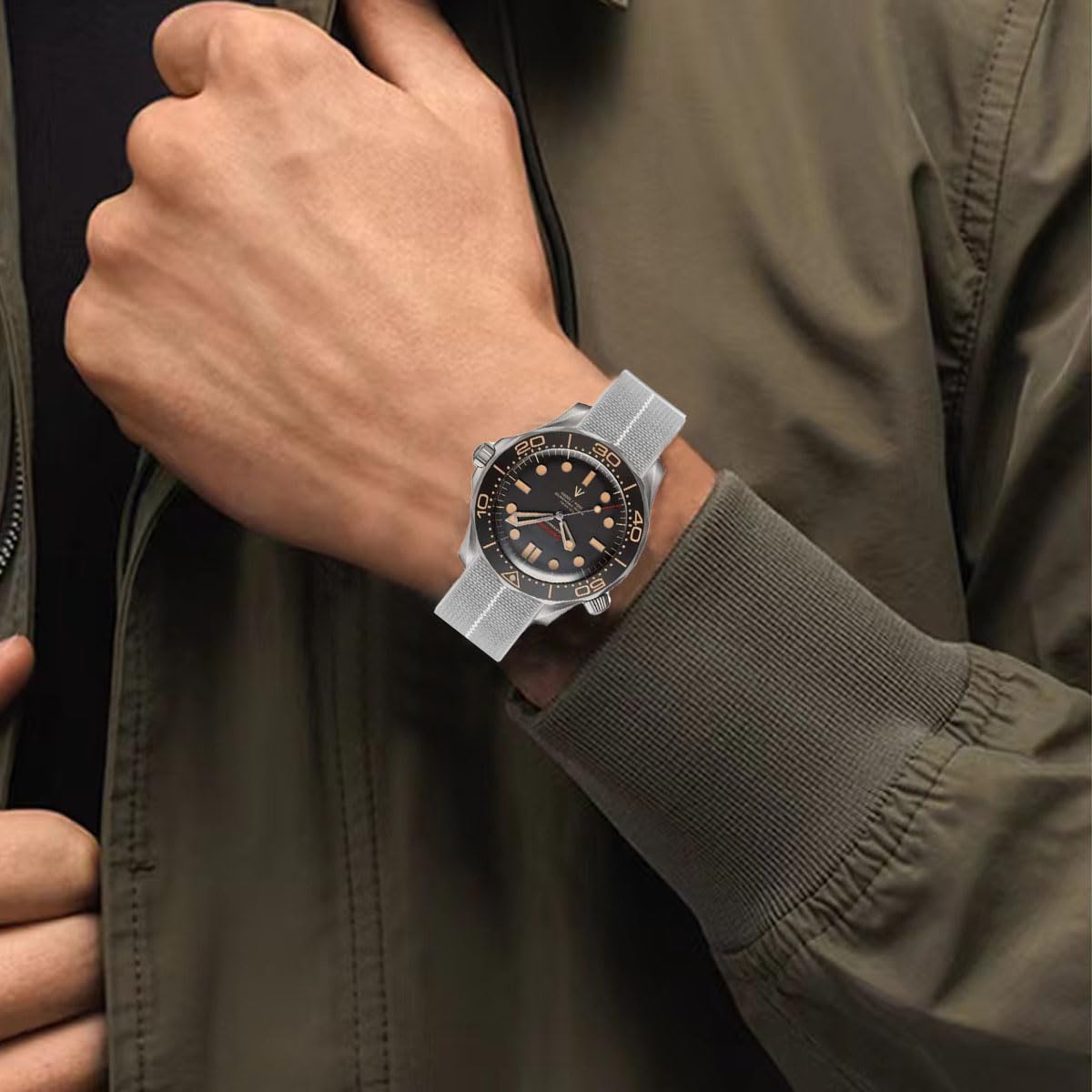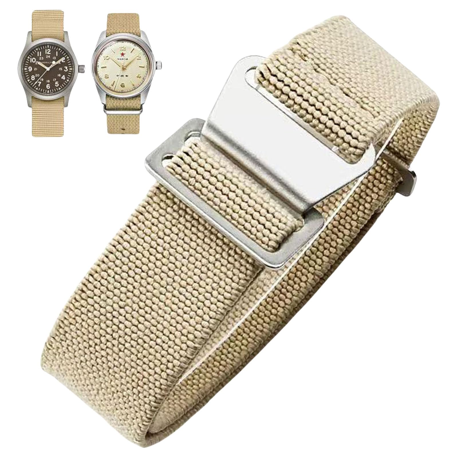 High Quality:This paratrooper-style strap is made from super stretchy nylon-like fabric elastic to ensure a perfect fit for any wrist size. This material has an exceptionally tight yet breathable, soft Twill Weave of polyester and rubber, with reinforced edges that prevents unraveling and shape change when stretched. Danxancy MN style watch strap finish your timepiece deserves.