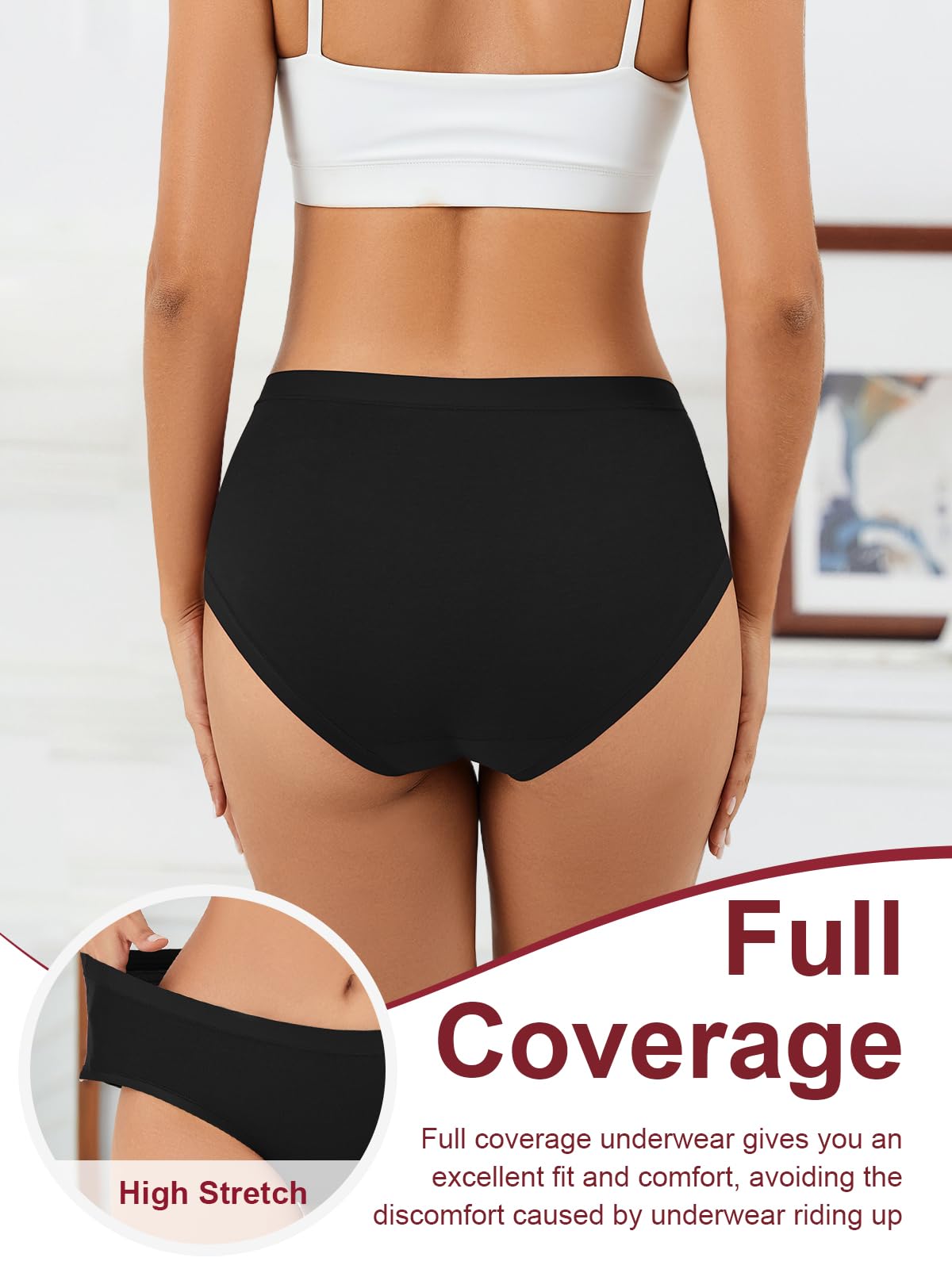 Comfortable Fit for Daily Wear: Made with 40-needle woven cotton, this underwear women pack offers a soft, flexible fit that moves with your body, preventing bunching or rolling and providing reliable full coverage.