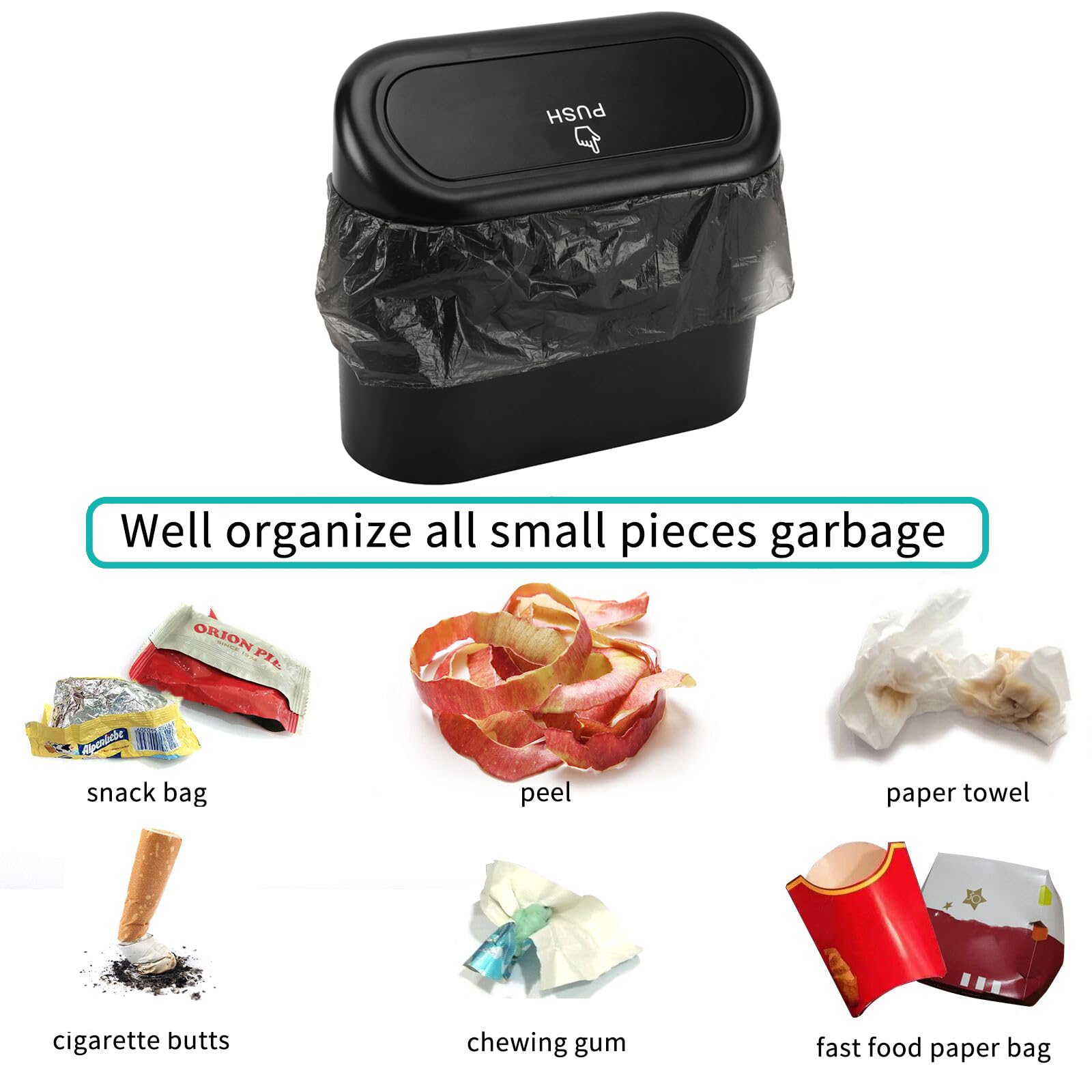 【Compact Size, Large Capacity, Space Less,】 With a compact size of 6.3*5.1*2.48 inch. Tiny but functional car garbage bin will maintain your vehicle clean and organized yet do not occupy too much space of the car.