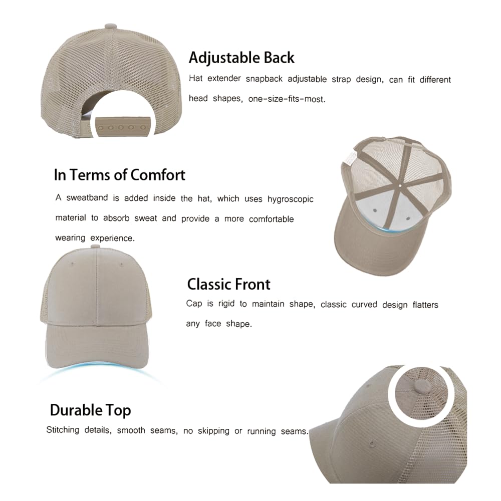 [One Size Fits Most]: These snapback caps come with an adjustable plastic buckle, accommodating most head sizes with a circumference of approximately 54-64 cm (21.5-25.2inches). Suitable for both women and men, these caps are an excellent choice for blank trucker hats, fitting a wide range of head shapes.