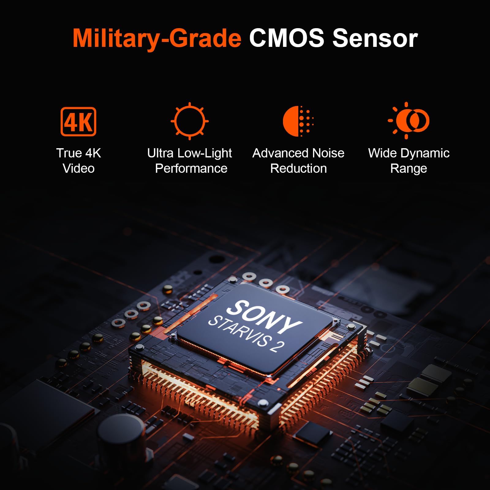 【True 4K Video with STARVIS 2 Sensor】Capture every detail in true 4K with a military-grade STARVIS 2 sensor. 52MP images deliver bright, crisp visuals for long-distance viewing, night surveillance, or outdoor adventures