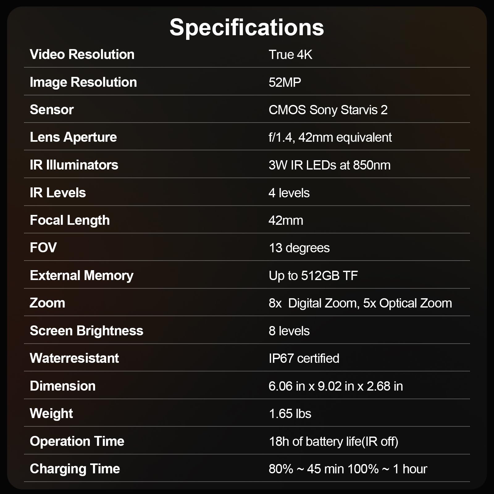 【What’s in the Box】 Night Thunder X1 comes in a premium protective case. Includes 1x NTX1,1x 64GB SD card, 1x neck strap, 1x USB-C cable, 1x lens cover, and user manual—everything you need to explore the night. NTX1 helps you own every adventure after dark