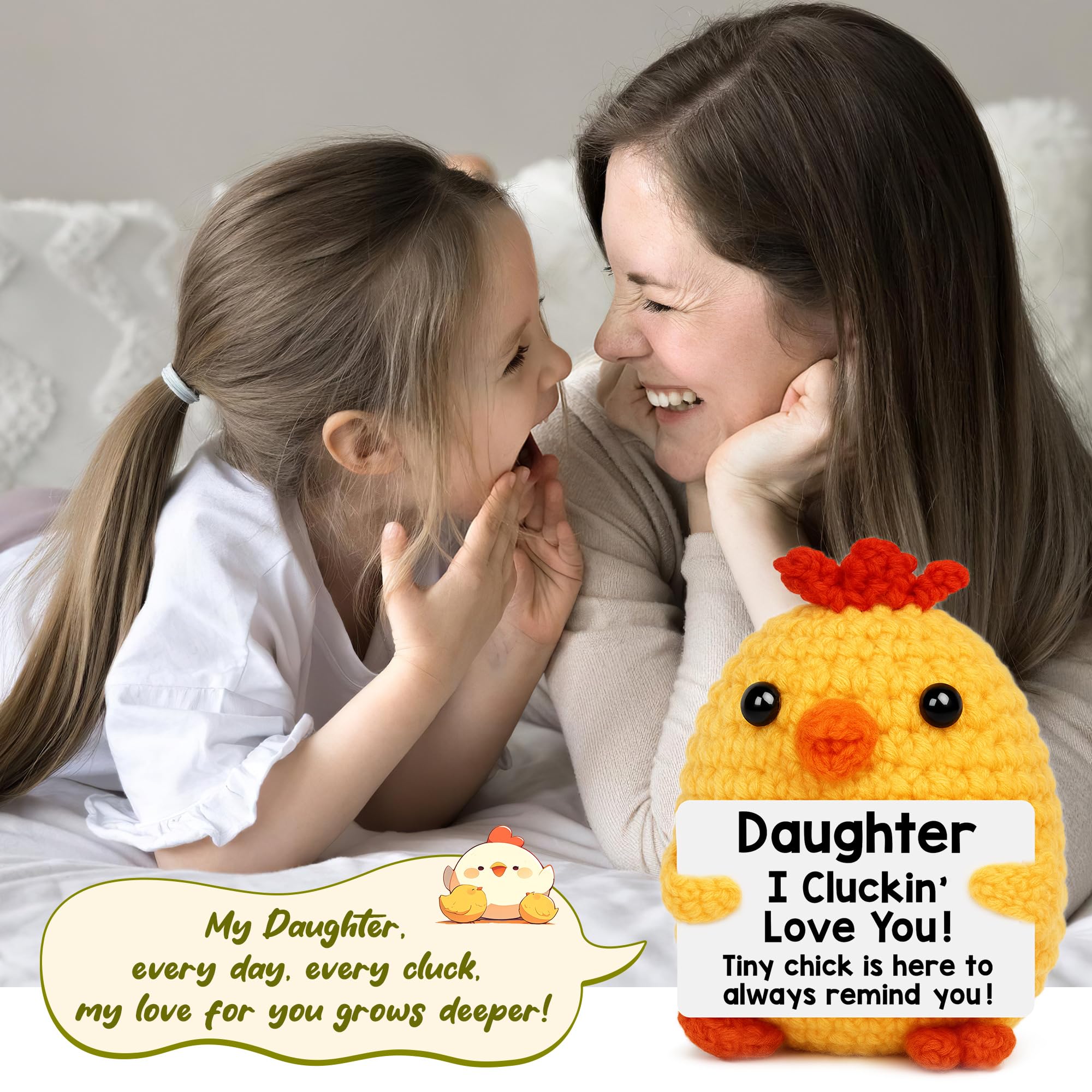 A Unique Gift of Affection: “Daughter, I Love You!” With its heartfelt card, this chick is the perfect gift for birthdays, holidays, Christmas, graduation or any special moment, letting her feel your constant love and thoughtfulness