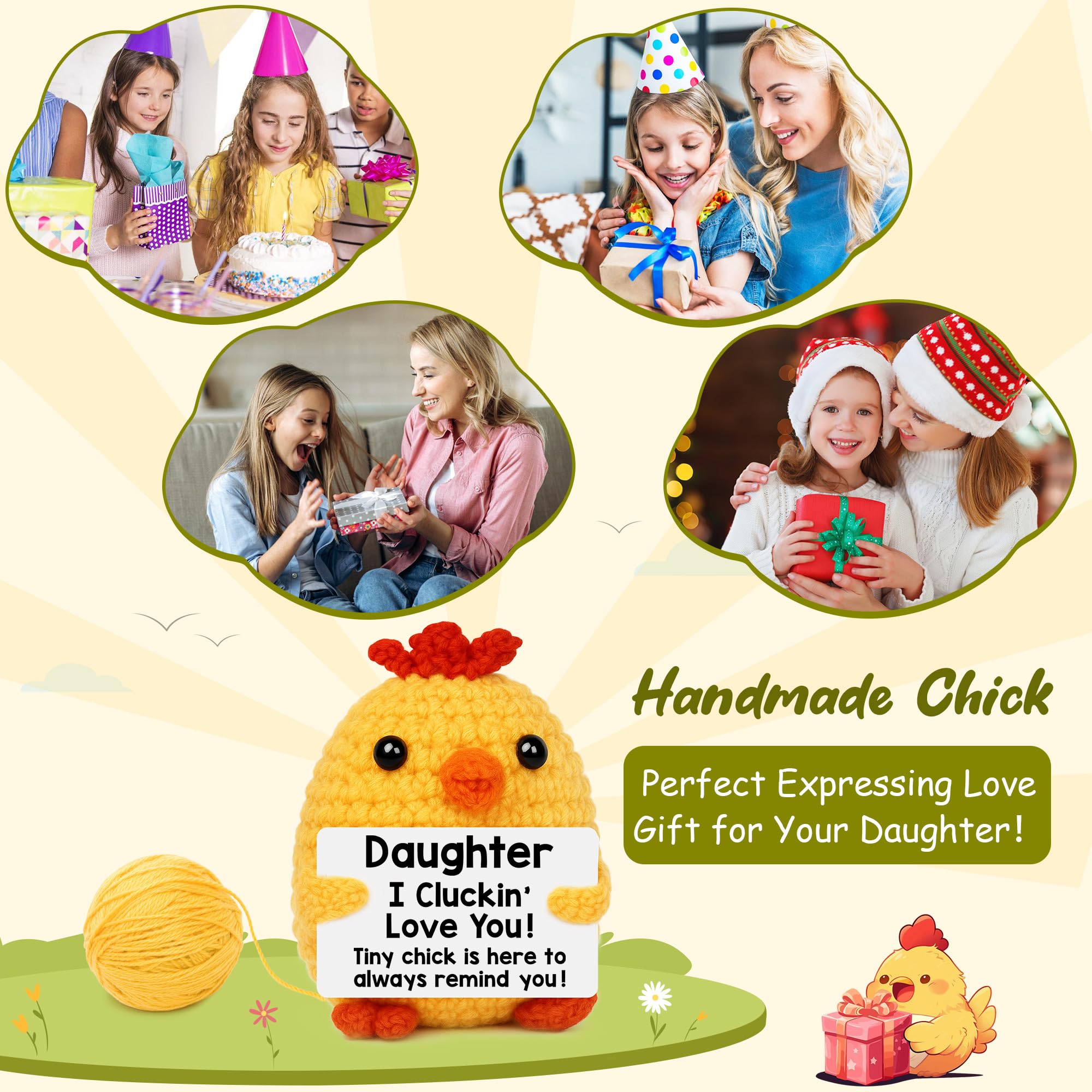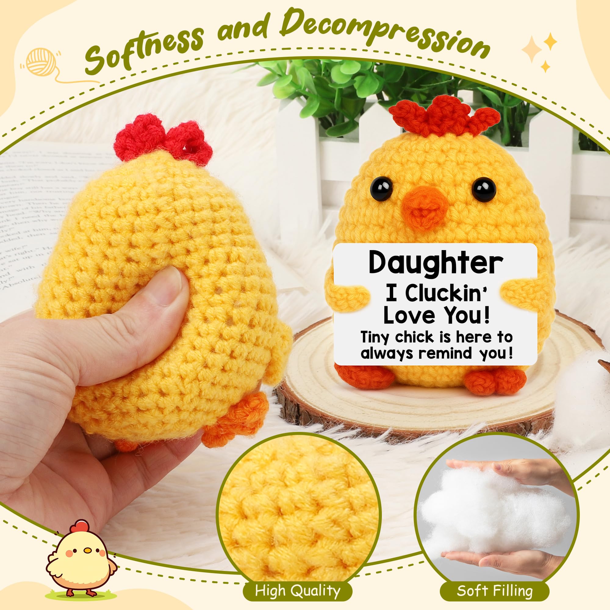 Handmade Crochet Chick: Made with premium yarn and meticulously hand-stitched, this crochet chick comes with a positive card. Chick size is 2.36'' x 1.96'' x 3.7'', it’s small cute to fit in pockets or backpacks, ready to carry positivity on the go
