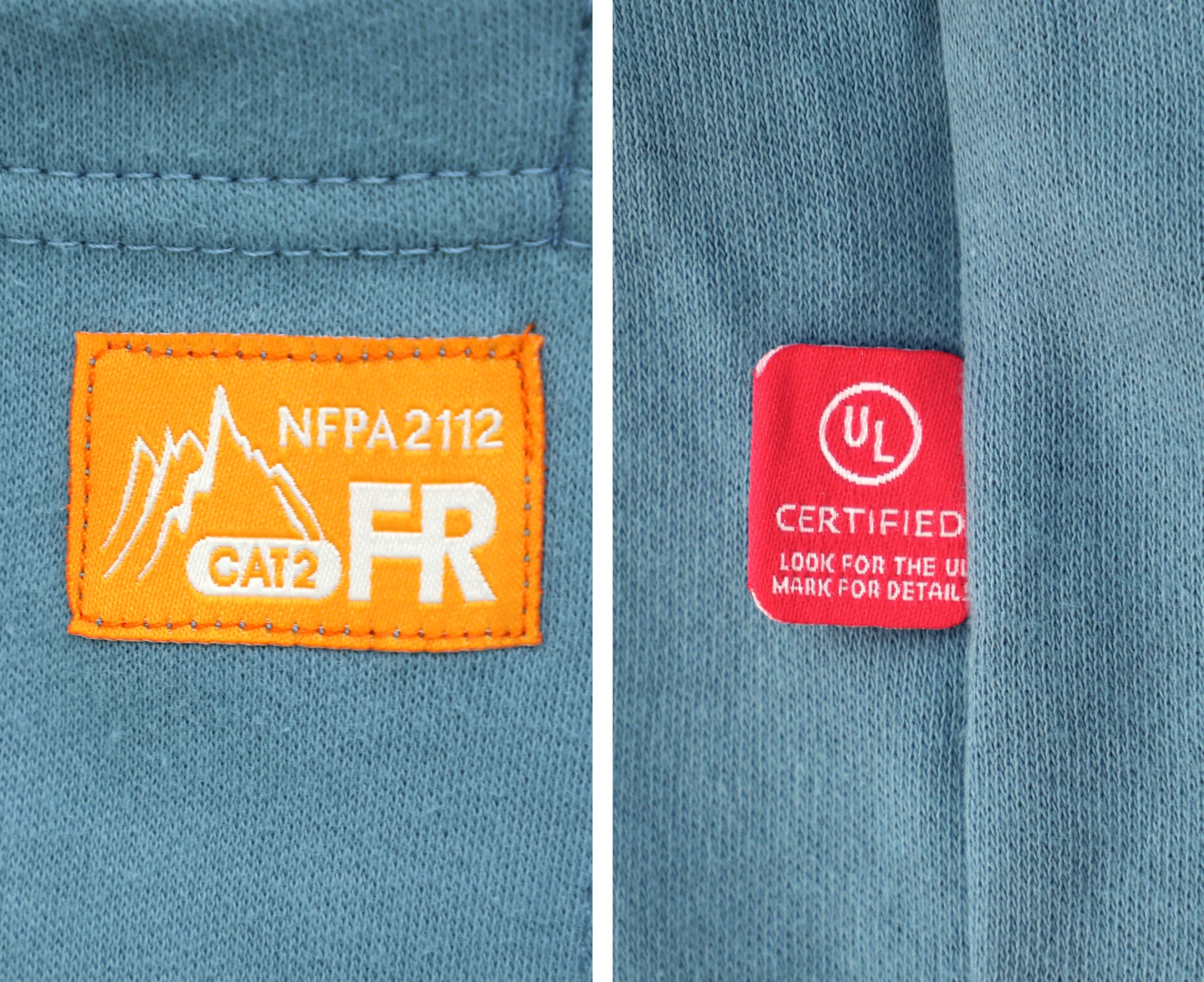 Our FR shirt meets or exceeds the standards for HRC2, Arc Rating Atpv 11.6 Calories/cm2 and the requirements of UL classified NFPA2112 standard on flame resistant garments for protection of industrial personal against flash fire, 2018 edition. Also NFPA70E ASTM F1506 and CAT II certified!