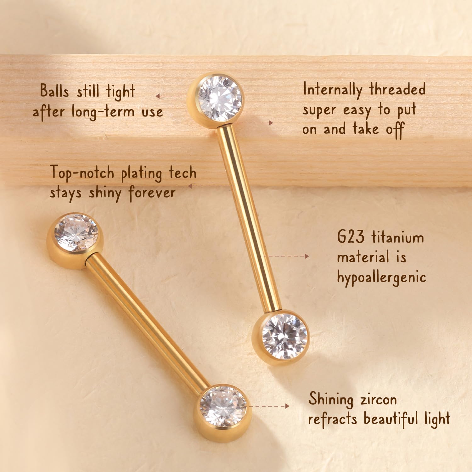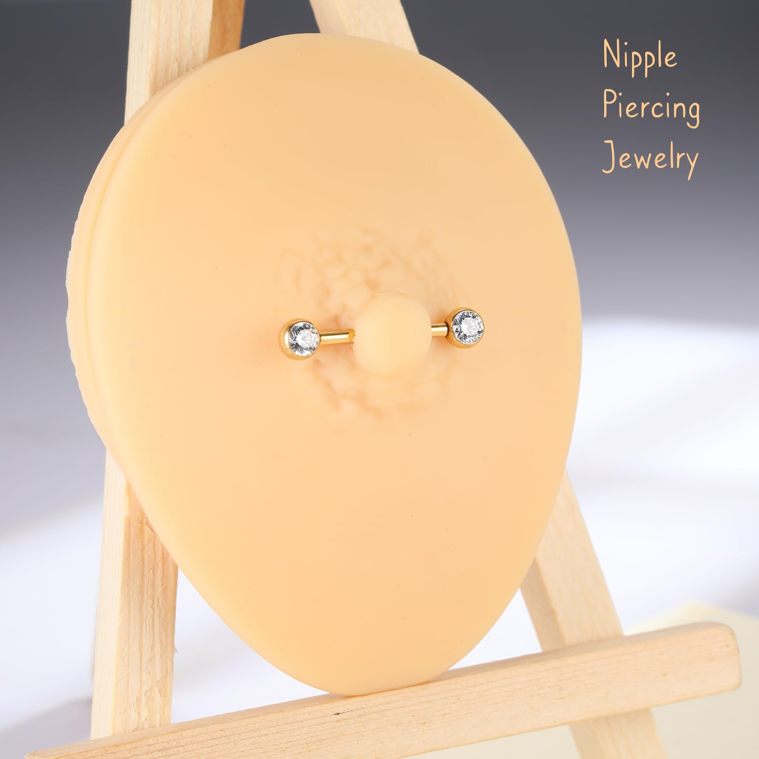 Unique Design: The nipple piercing jewelry with shiny cubic zirconia on both side, to make your nipple piercing more charming