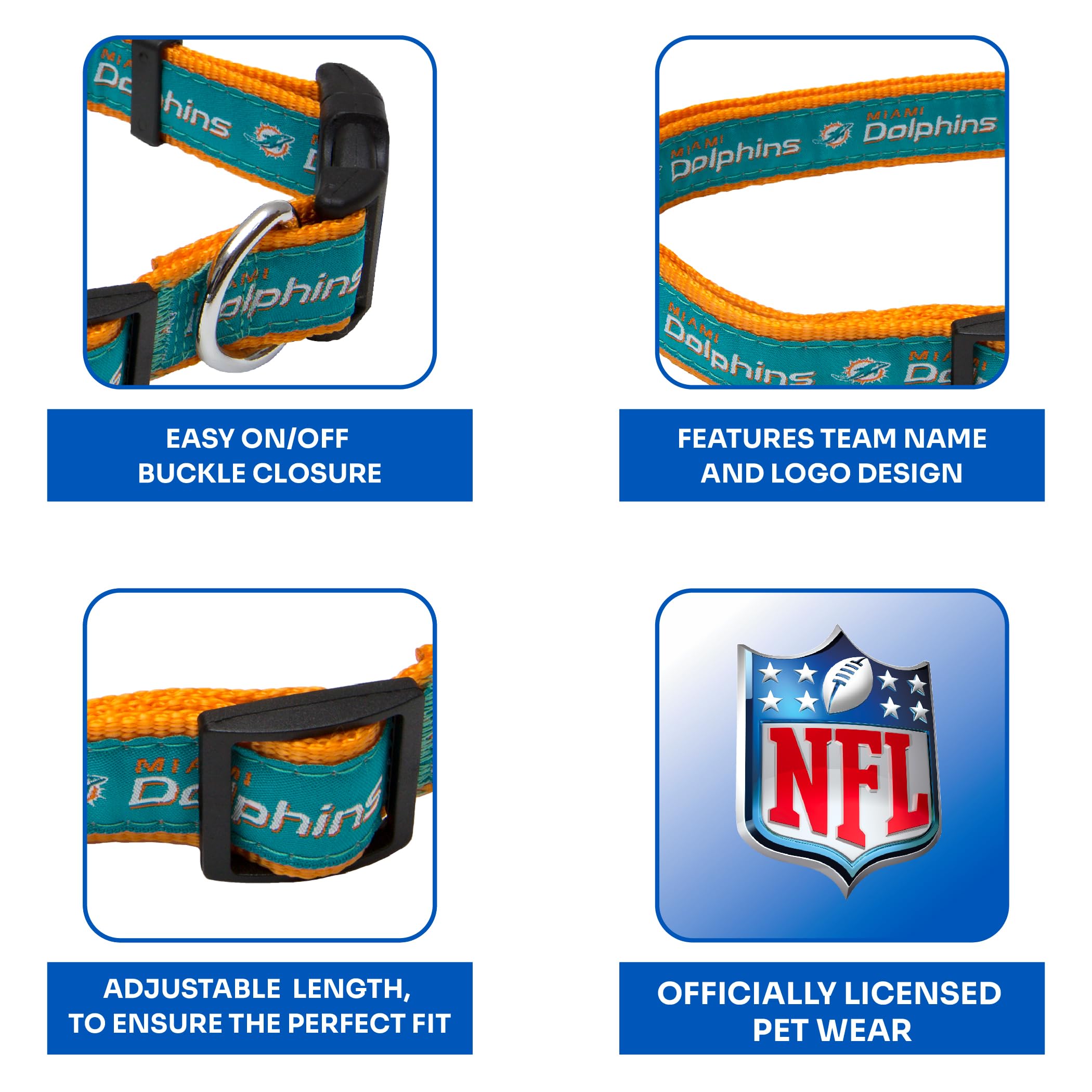 SIZE: - This NFL DOG COLLAR accessory is ADJUSTABLE & available in 4 sizes. Great for any size pet; from small puppies & kittens to Large CATS/DOGS & other animals - For sizing specifications please refer to our size chart located in IMAGE #2!.STURDY CAT COLLAR & DOG COLLAR: - Now that you have found the perfect collar for your pet why not buy a MATCHING DOG LEASH or CAT LEASH, check out our other NFL PET GEAR on Amazon; from NFL Jerseys, NFL Dog Toys to NFL Accessories!.TOP QUALITY DOG COLLAR & CAT COLLAR for Pets: Whether you are taking your sweet pet on a walk or just wanna show-off how cute s/he is, PETS FIRST got you covered! ADD TO CART NOW!