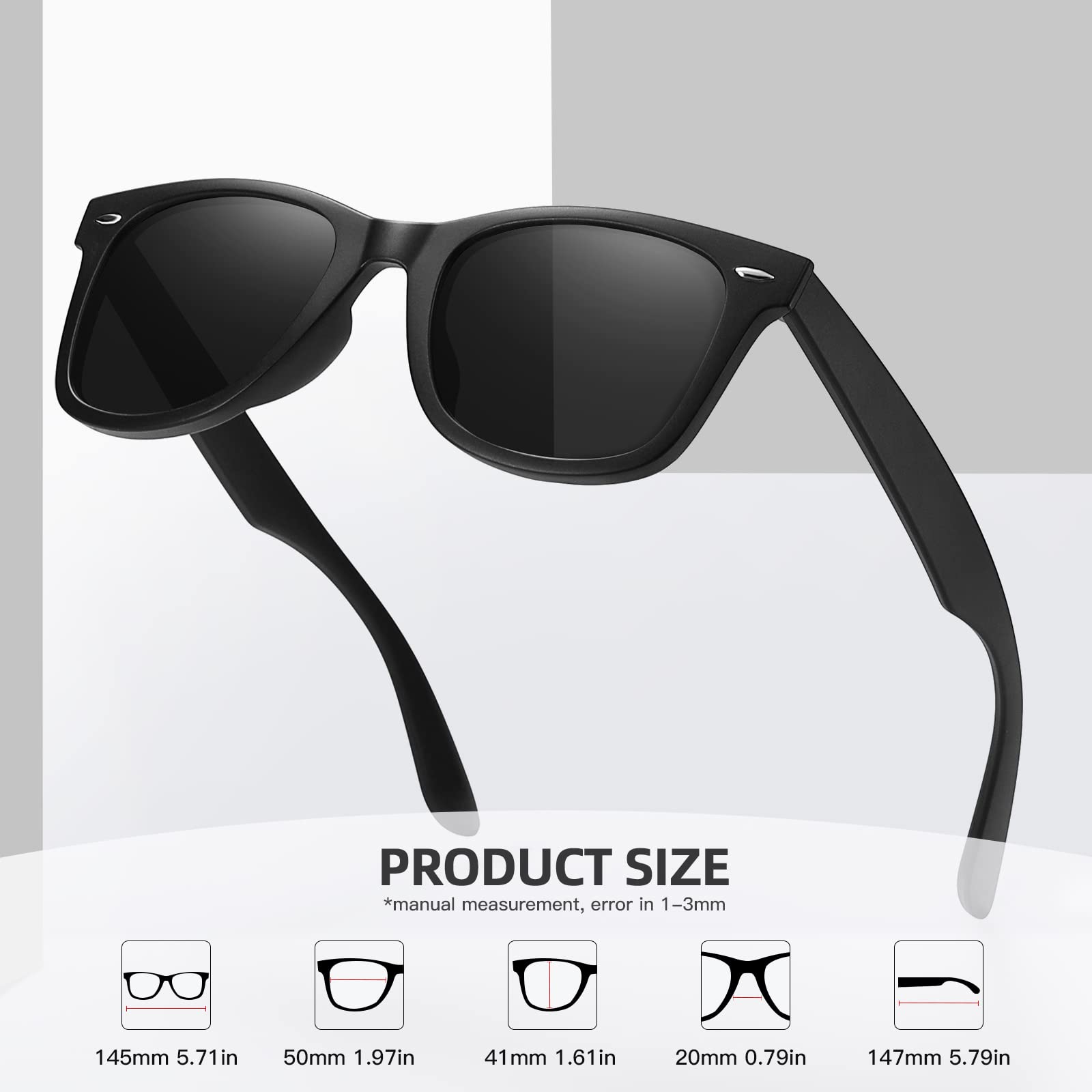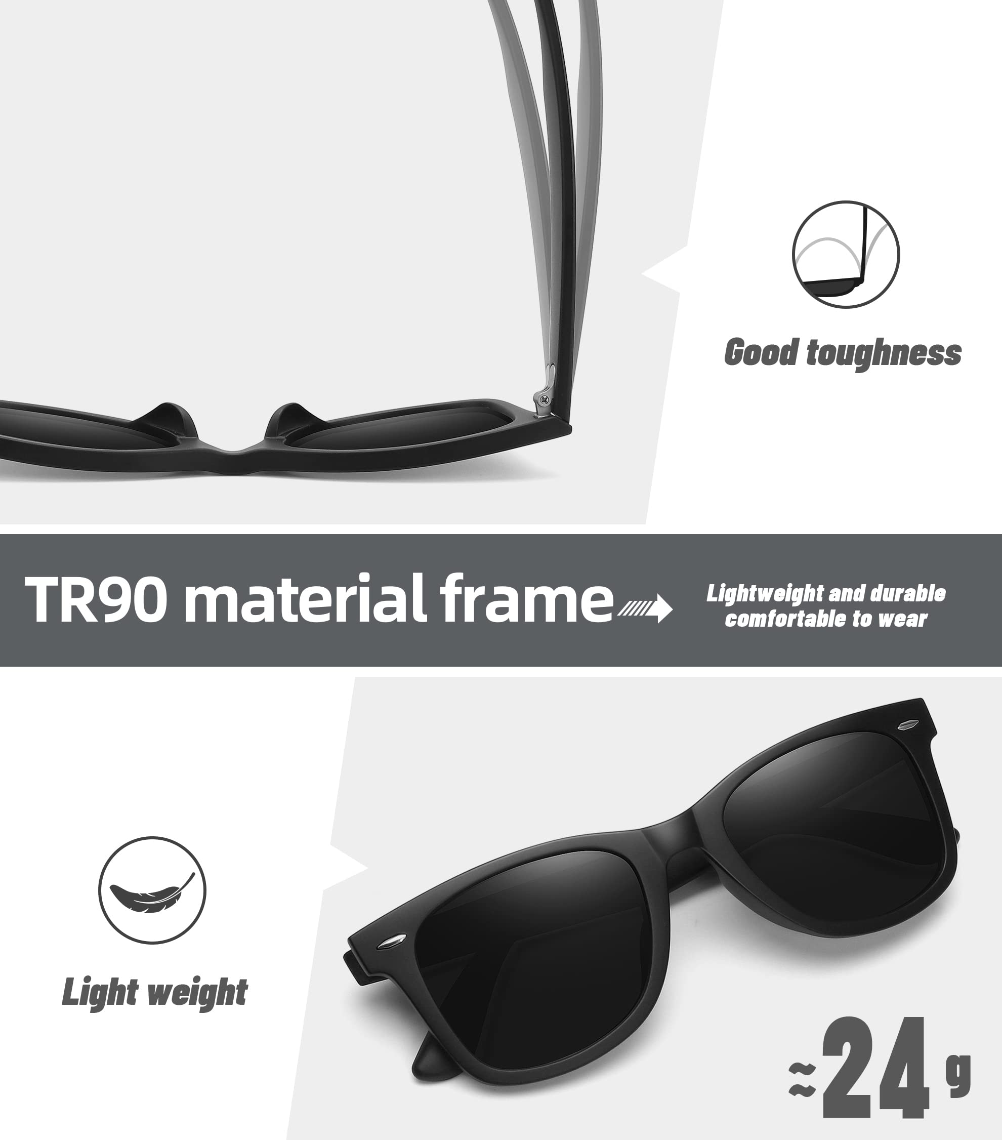 UNISEX POLARIZED SUNGLASSES: TAC HD polarized technology lenses reduce glare and reflection from the open road, water surface, snow, or other horizontal surfaces. Polarized lenses not only reduce eye strain but also increase visual clarity and restore true color.