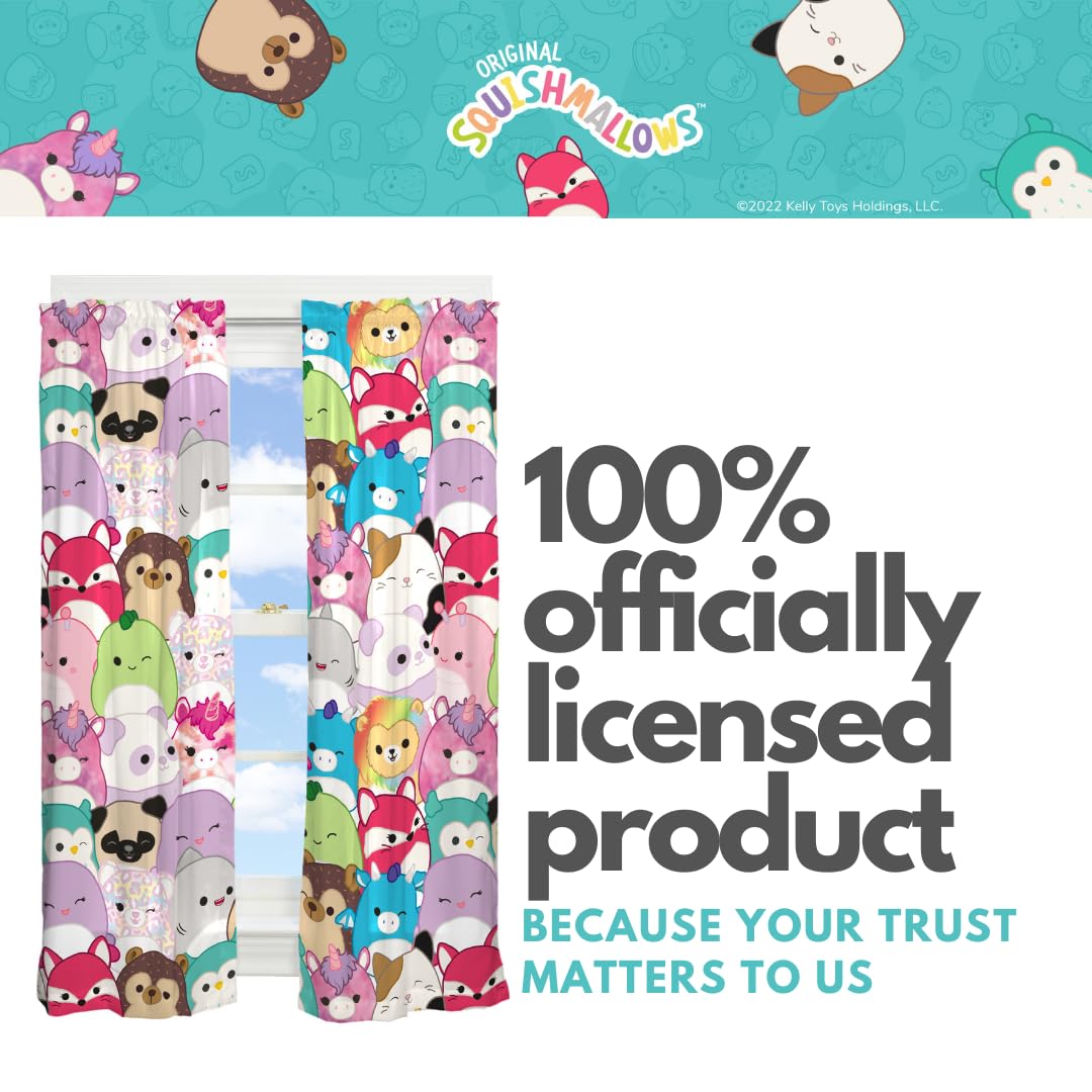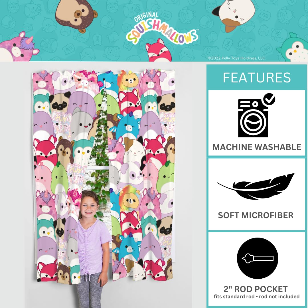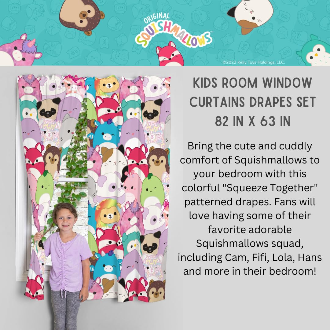 SQUISHMALLOWS DESING: Bring the cute and cuddly comfort of Squishmallows to your bedroom with this colorful "Squeeze Together" patterned drapes. Fans will love having some of their favorite adorable Squishmallows squad, including Cam, Fifi, Lola, Hans and more in their bedroom!