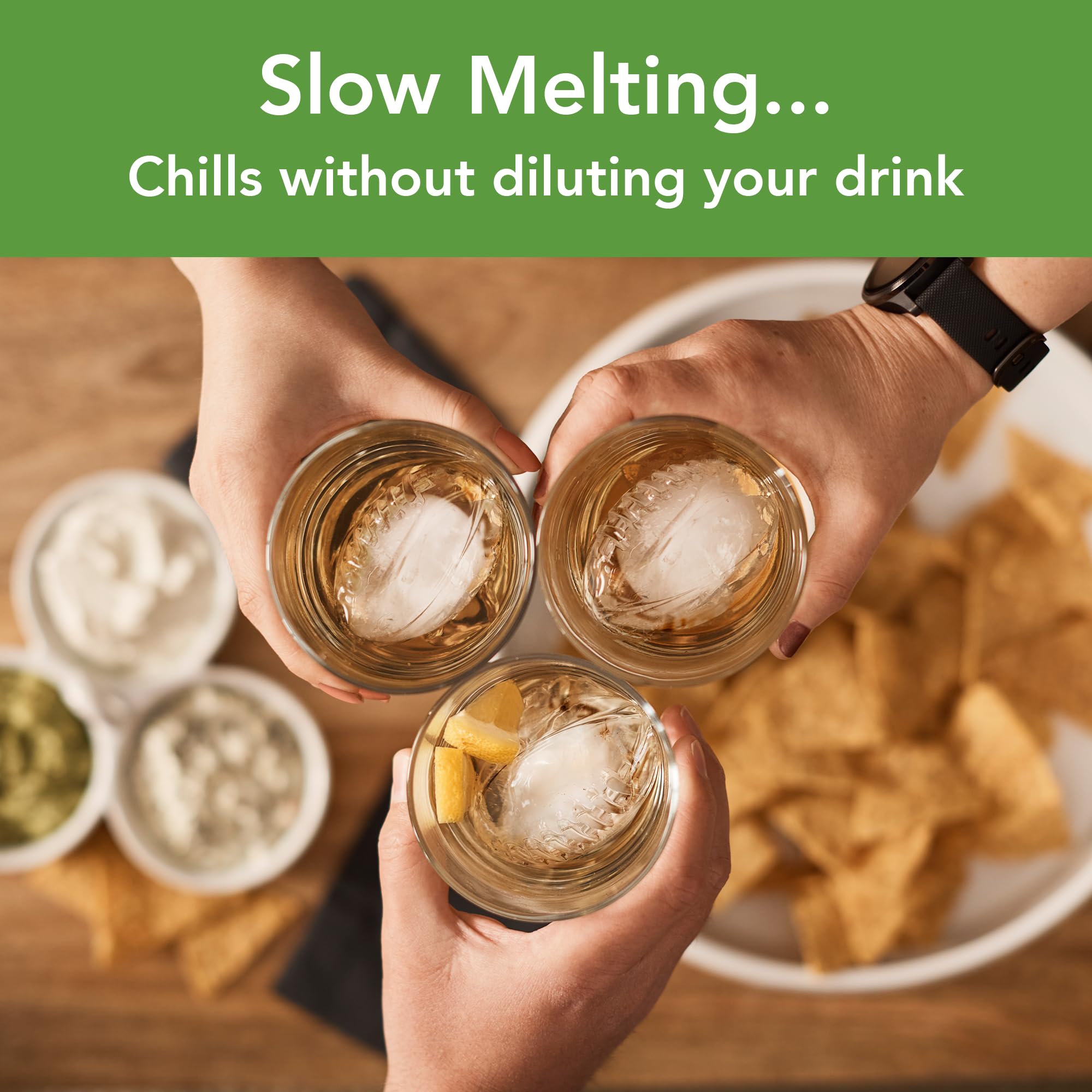 LONG LASTING CHILL POWER: Large football ice cube mold creates oversized ice that melts slower than regular ice keeping your bourbon whiskey cocktails colder longer without diluting the flavors you love