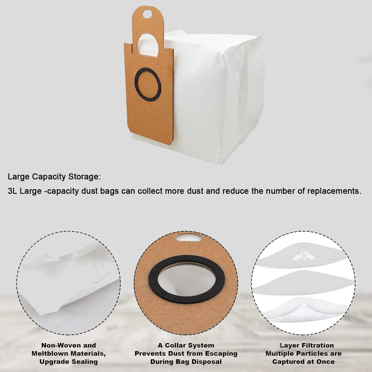 Large Capacity Storage: 3L Large -capacity dust bags can collect more dust and reduce the number of replacements