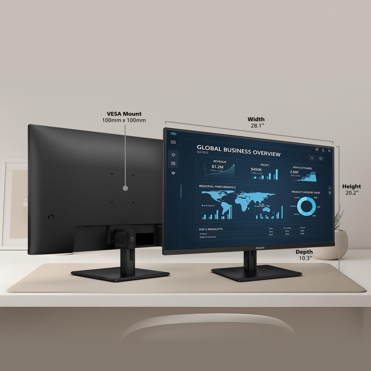 Philips 32E1N1100L 32" frameless monitor (E Line) . Simply immersive. The 32" E line display offers a truly immersive experience in a stylish design. Experience crisp Full HD visuals, and smooth action with Adaptive-Sync technology. Superb Picture Quality: VA display delivers awesome images with wide viewing angles . 16: 9 Full HD display for crisp detailed images . Effortlessly smooth gameplay with 100Hz refresh rate and Adaptive-Sync support. SmartImage game mode optimizes display for gamers. Features designed for you: Cable management reduces cable clutter for neat workspace . Less eye fatigue with Flicker-free technology . LowBlue Mode for easy on-the-eyes productivity . HDMI ensures universal digital connectivity . DisplayPort connection for maximum visuals . What's in the box: Monitor with stand, D-Sub cable, HDMI cable, Audio cable, Power cable, User Documentation.