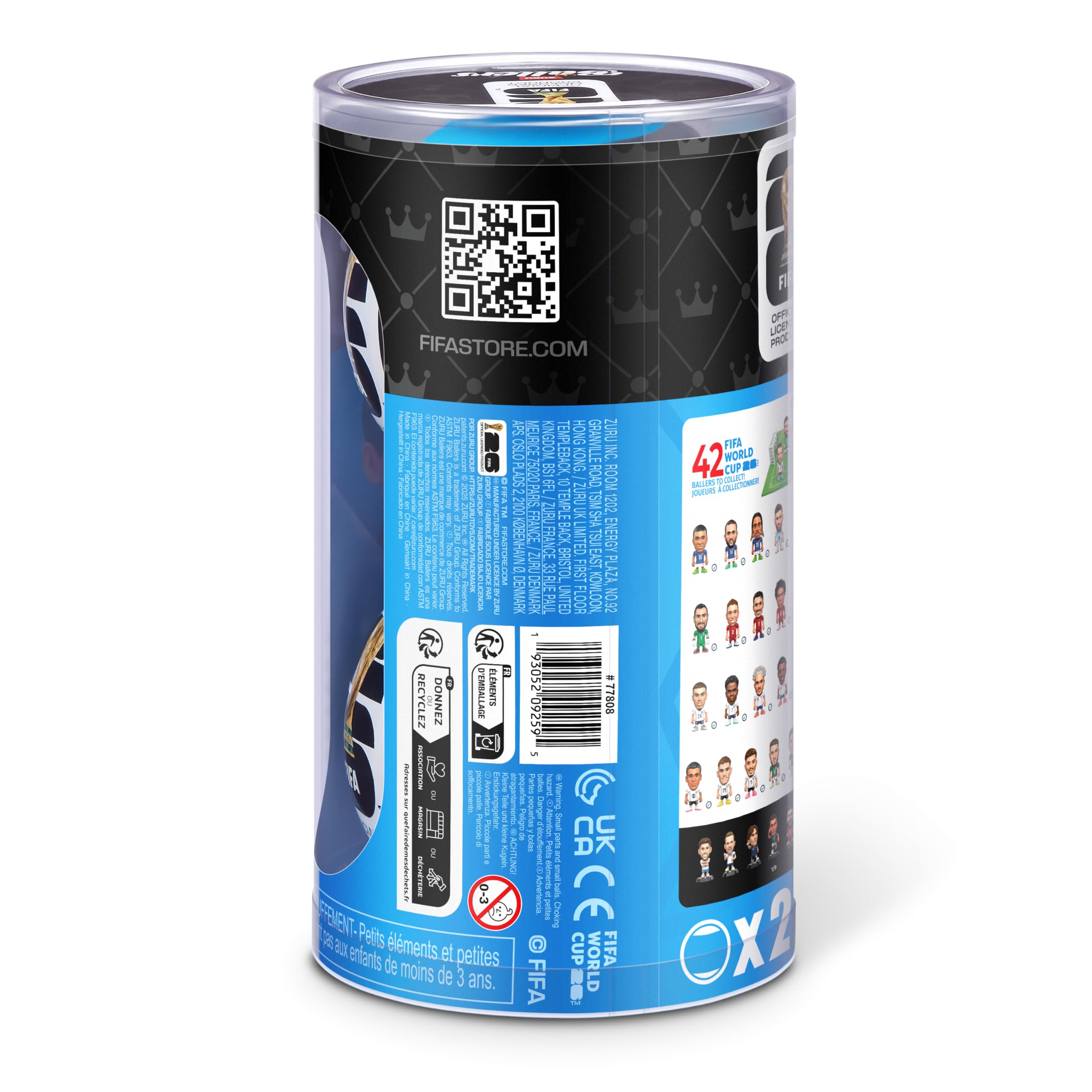 Unbox, collect, and build your dream team with ZURU Ballers FIFA Series 1, the officially licensed collectible from the FIFA World Cup™ ! With 33 soccer players to collect, 7 rare figures and 2 super rares, every capsule is packed with soccer fandom. Representing the best teams from around the globe, including Brazil, Argentina, Germany, France, Spain, England, Uruguay, Mexico, Canada, and the USA, each player comes with a collector coin, a miniature soccer, and an additional epic surprise. Find rare moments, like Messi and Mbappé frozen in their iconic World Cup-winning celebrations, and unlock surprise accessories, including soccers and other collectible items. Build your collection and create the ultimate team with the best soccer players from the world’s biggest stage, the FIFA World Cup! Suitable for ages 3+. Collect all 33 players: Lautaro Martínez, Lionel Messi, Emiliano Martínez, Bradley Barcola, Kylian Mbappé, Adrien Rabiot, Jamal Musiala, Kai Havertz, Florian Wirtz, Gianluigi Donnarumma, Nicolò Barella, Alessandro Bastoni, Casemiro, Alisson Becker, Gabriel Magalhães, Harry Kane, Bukayo Saka, Cole Palmer, Dani Carvajal, Pedri, Ferran Torres, José María Giménez, Federico Valverde, Manuel Ugarte, Tajon Buchanan, Stephen Eustáquio, Alistair Johnston, Gio Reyna, Antonee Robinson, Tyler Adams, Edson Álvarez, Santiago Giménez, and Luis Ángel Malagón