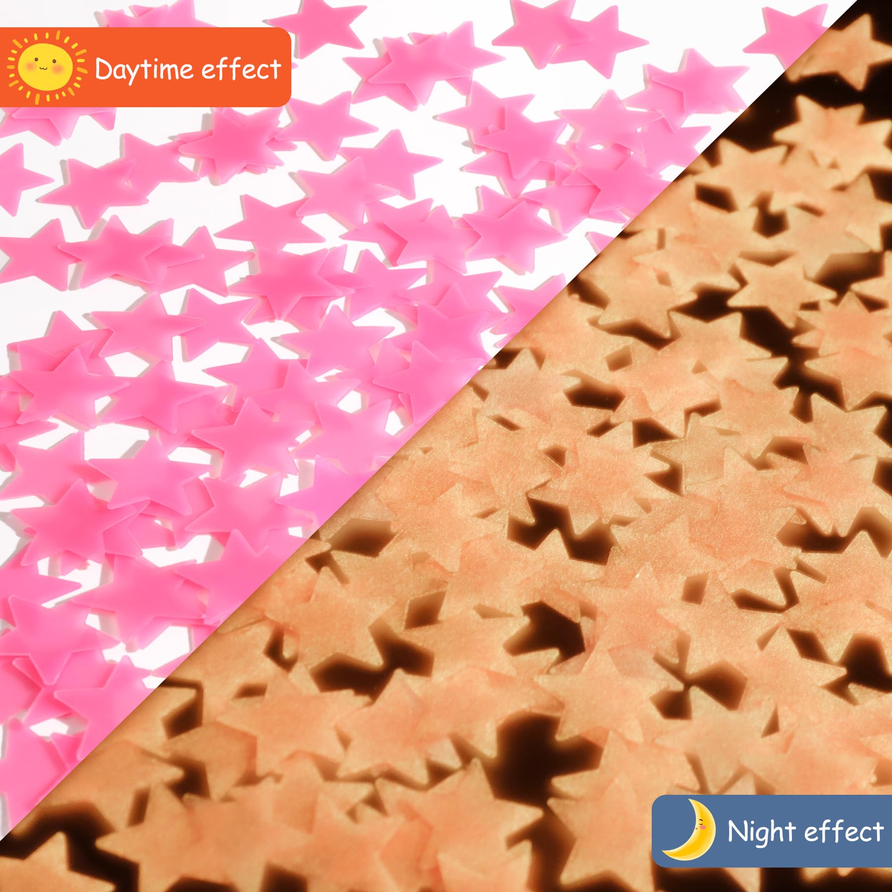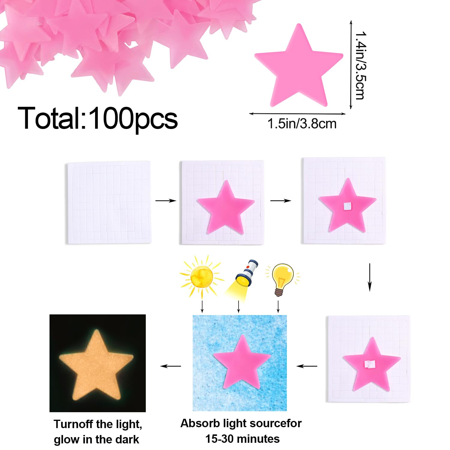 🎨 100-Piece Pink Stars – Includes 100 high-quality plastic stars (1.5 inch) in pink. Comes with adhesive dots for easy, damage-free application on walls, ceilings, or furniture.