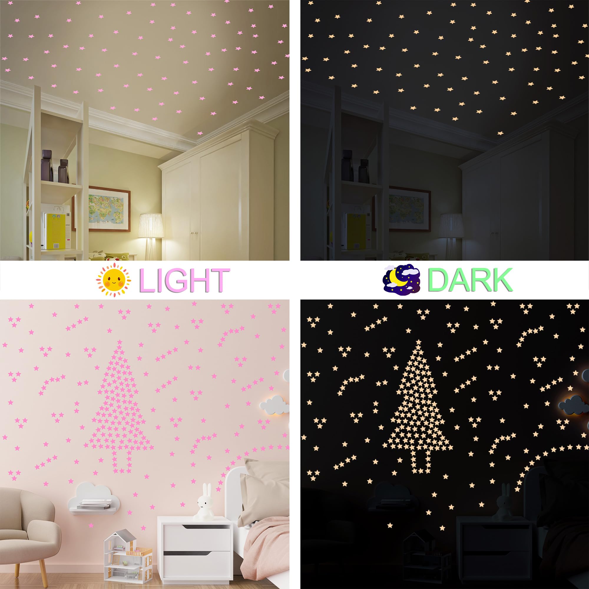 ✨ Bright & Long-Lasting Glow – These magical star stickers absorb light in 15-30 minutes and glow softly for hours! Perfect for creating a dreamy night sky effect in kids' rooms. Colors glow differently for a mesmerizing display.
