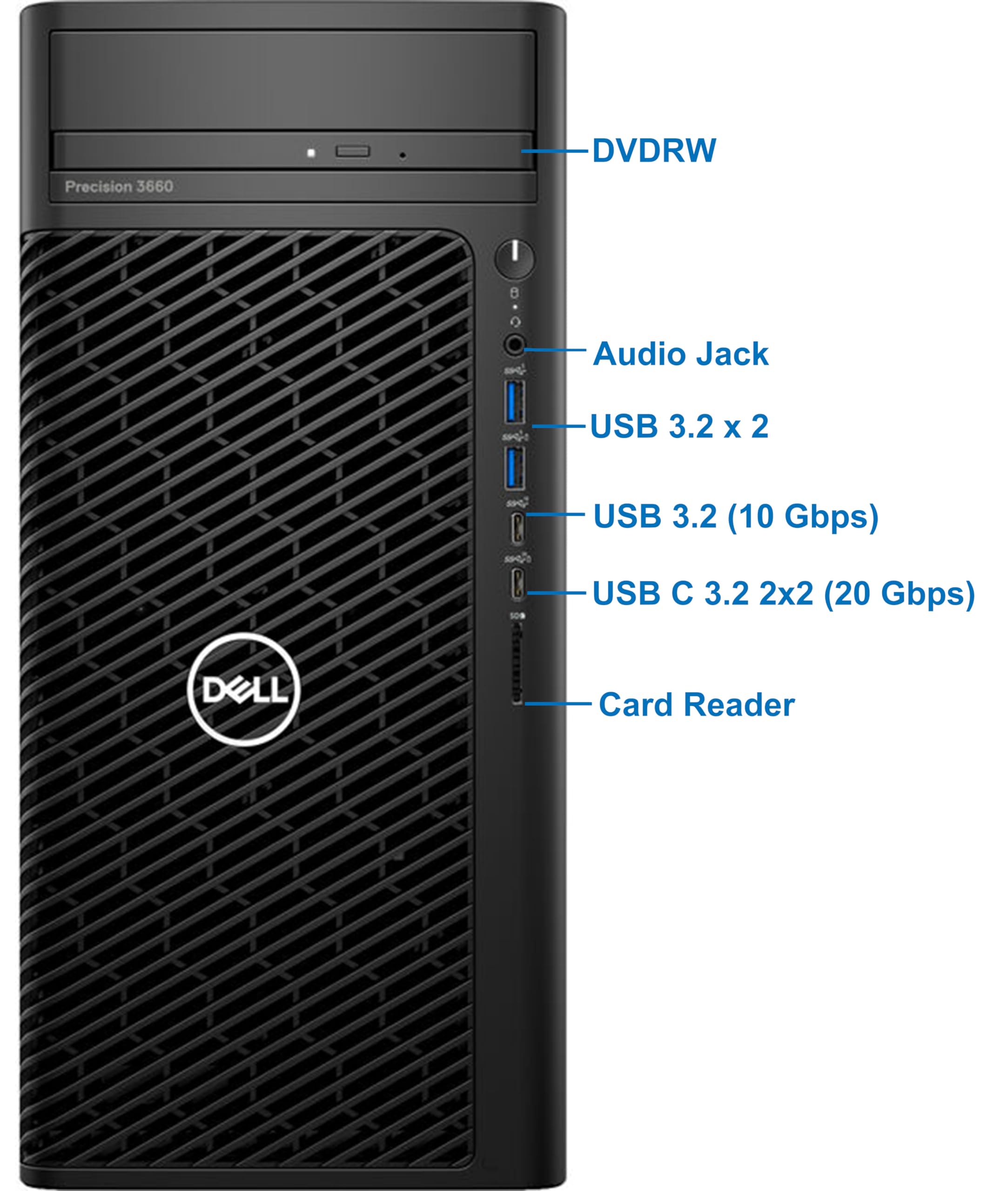 Dell Precision 3660 Tower Computer Intel i7-13700 16-Core 64GB RAM 2TB NVMe SSD Nvidia RTX A4000 16GB DDR6, Display Port, HDMI, Wi-Fi, Bluetooth Windows 11 Pro, Black Desktop