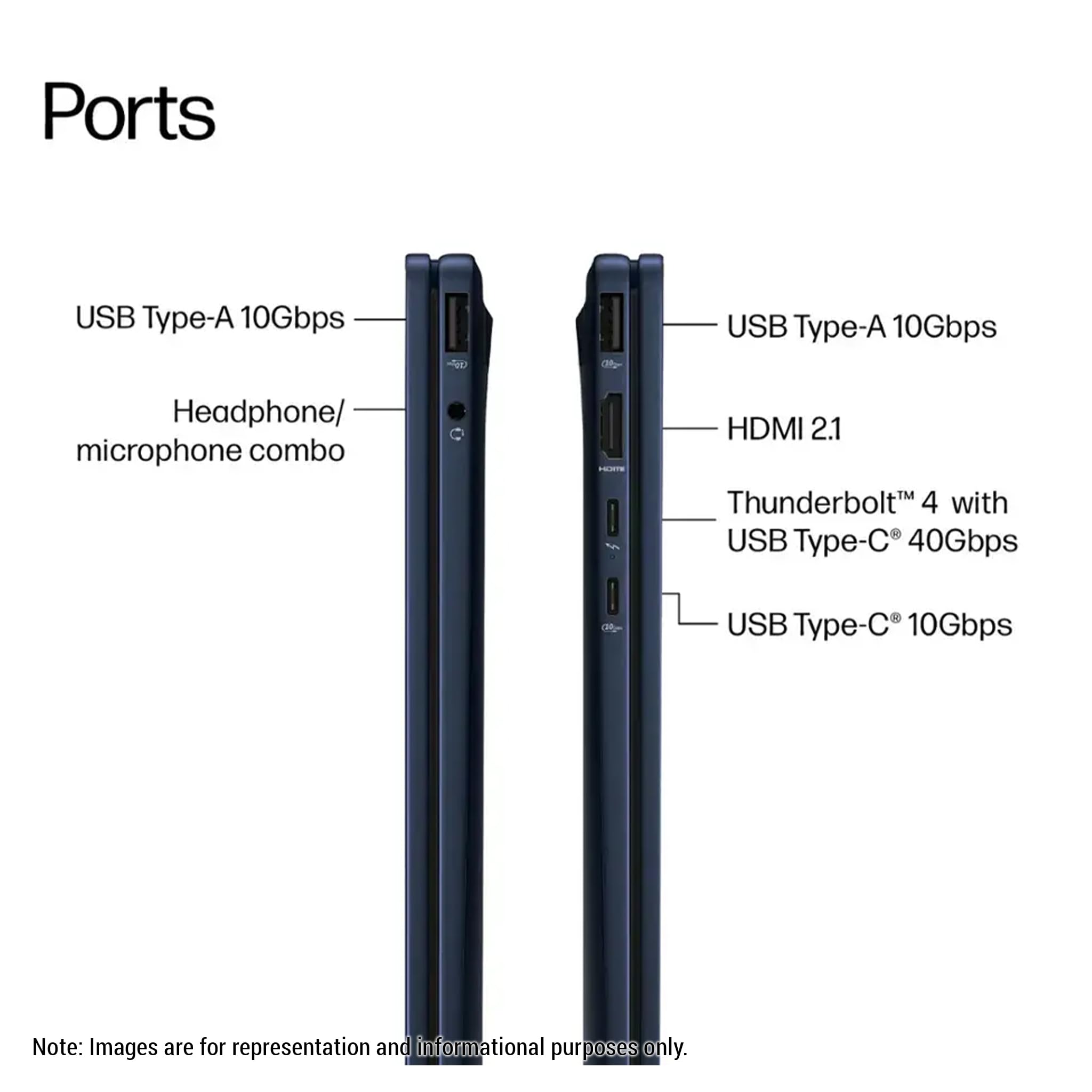 【Tech Specs】1 x HDMI 2.1, 1 x Thunderbolt 4, 1 x USB-C 3.1, 2 x USB-A 3.1, Wi-Fi 6E, Bluetooth