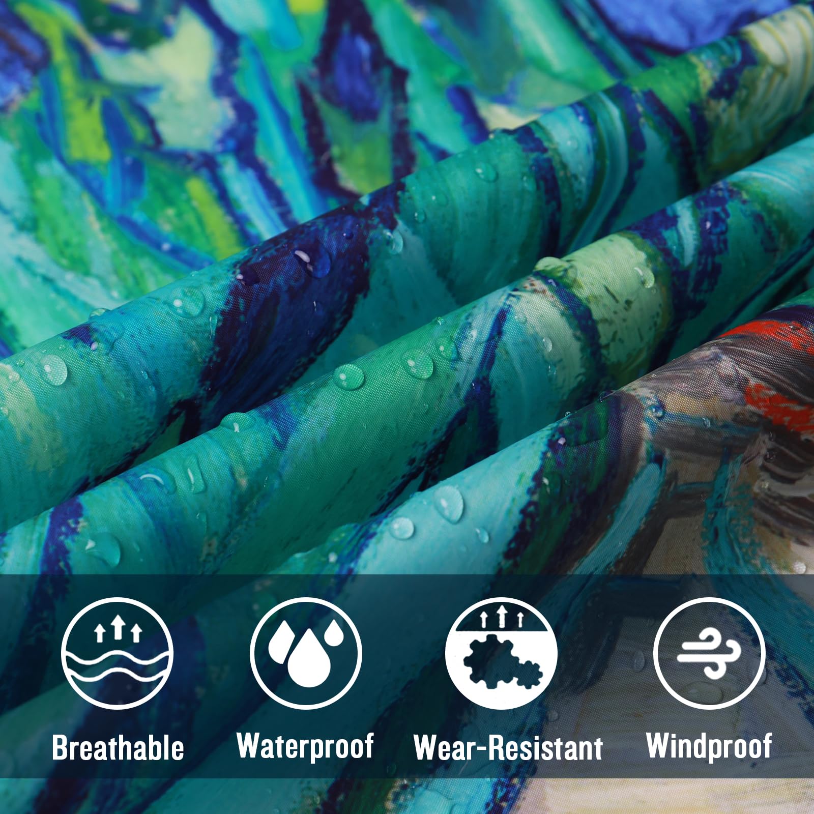 [Material]: Made from 100% polyester fabric, this rain poncho is eco-friendly and certified by OEKO-TEX STANDARD 100 for safety and environmental sustainability. It offers exceptional water resistance, quick-drying properties, and a lightweight, breathable texture for comfort