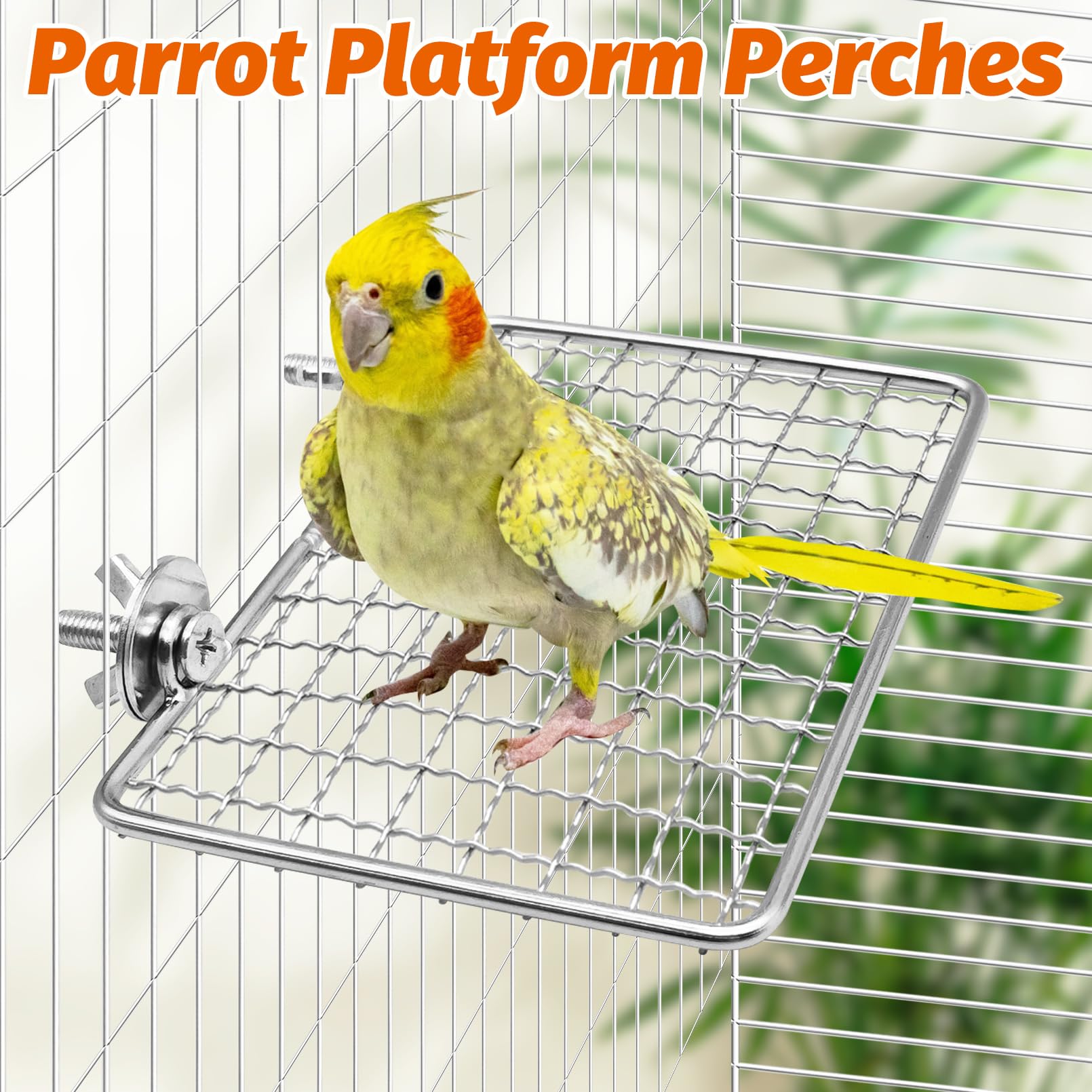 Easy Installation: Stainless steel bird perches platform effortless installation and removal, bird perch platform stand featuring dual fixed stainless steel components that ensure a secure fit. Not only simplifies the setup process but also allows for quick disassembly when needed