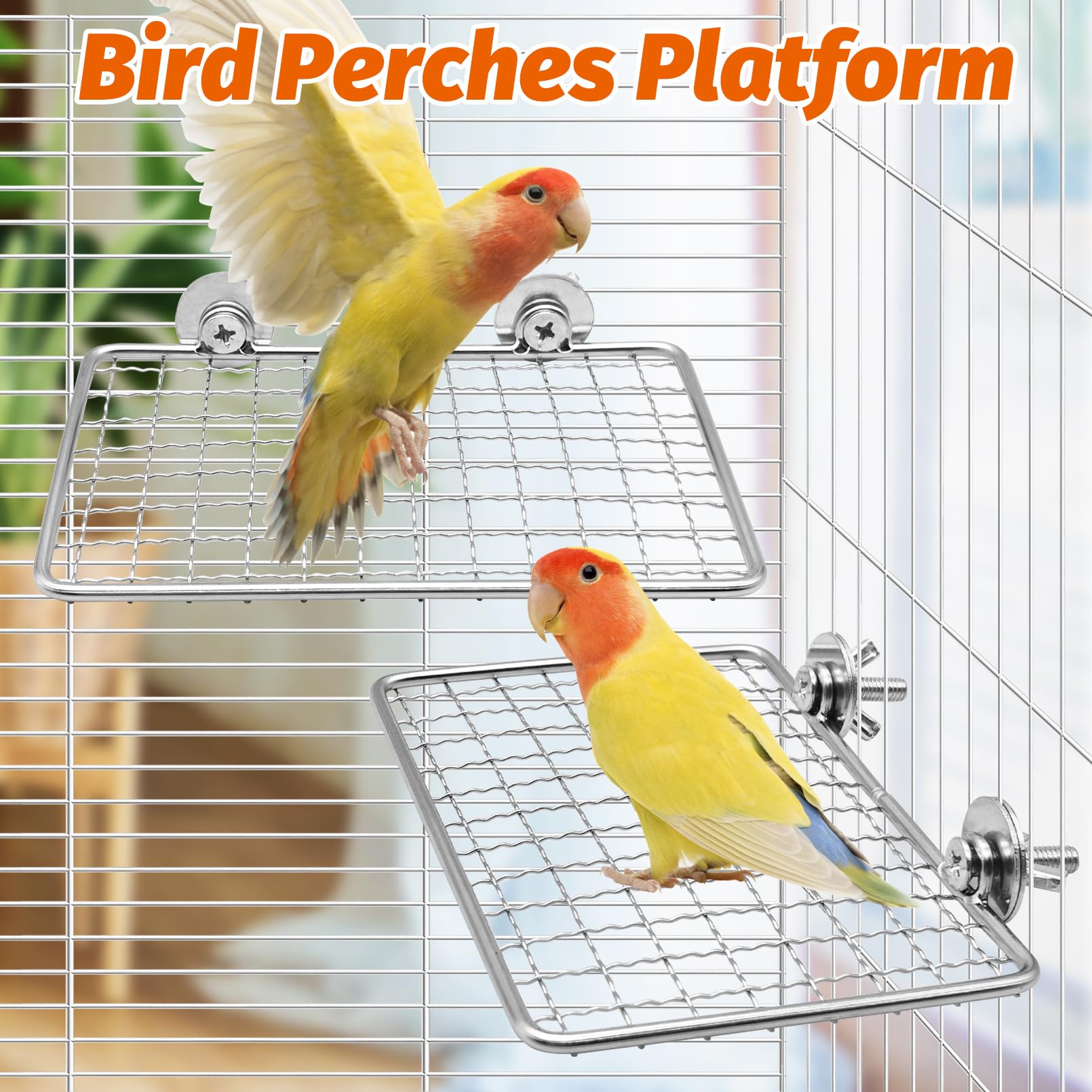 Bird Perch Set: BNOSDM parrot shelf set includes two stainless steel bird cage platforms, each measuring 5.9x3.9 inches. It creates a splendid activity space for your feathered friends, encouraging their natural behaviors and ensuring they have a comfortable environment to explore and play