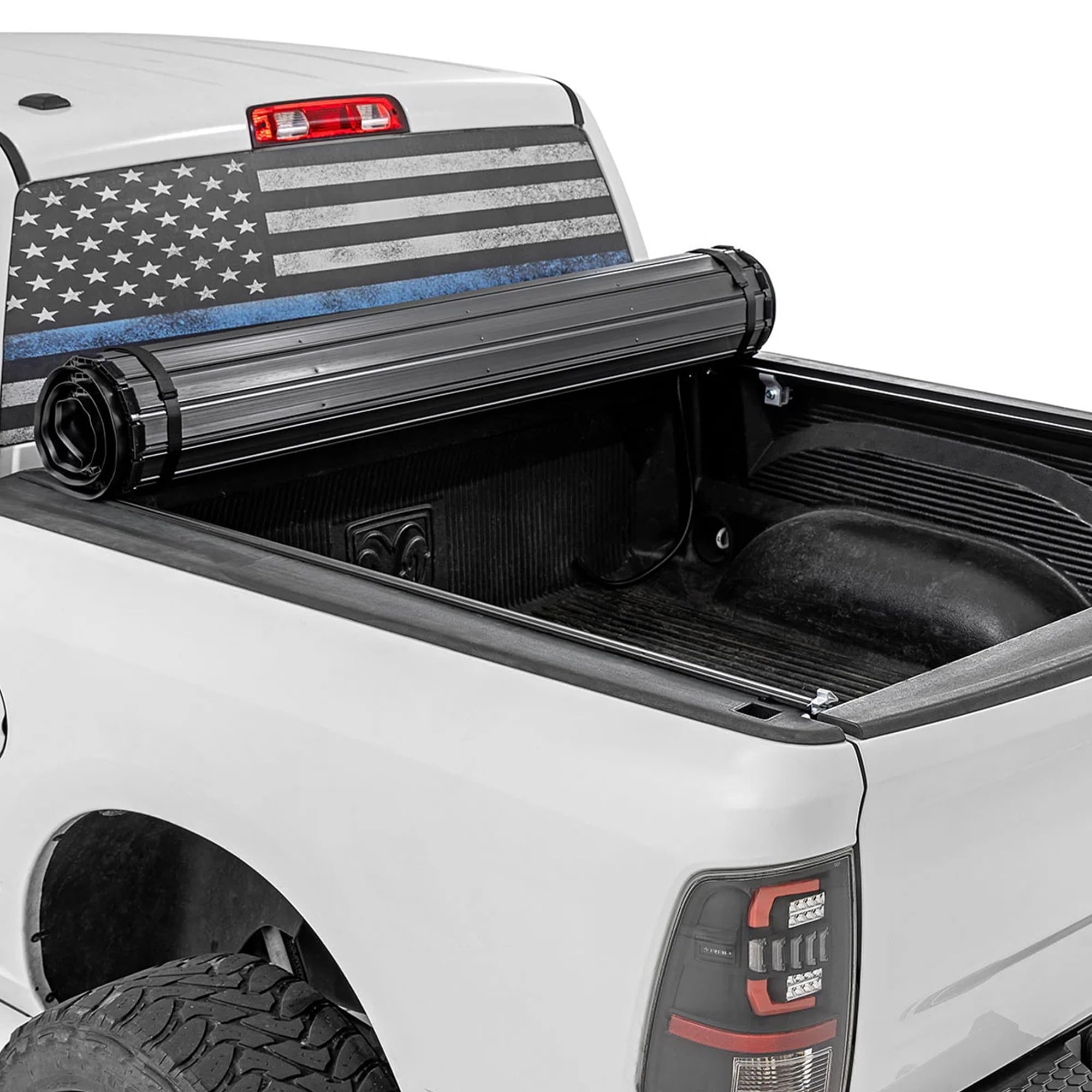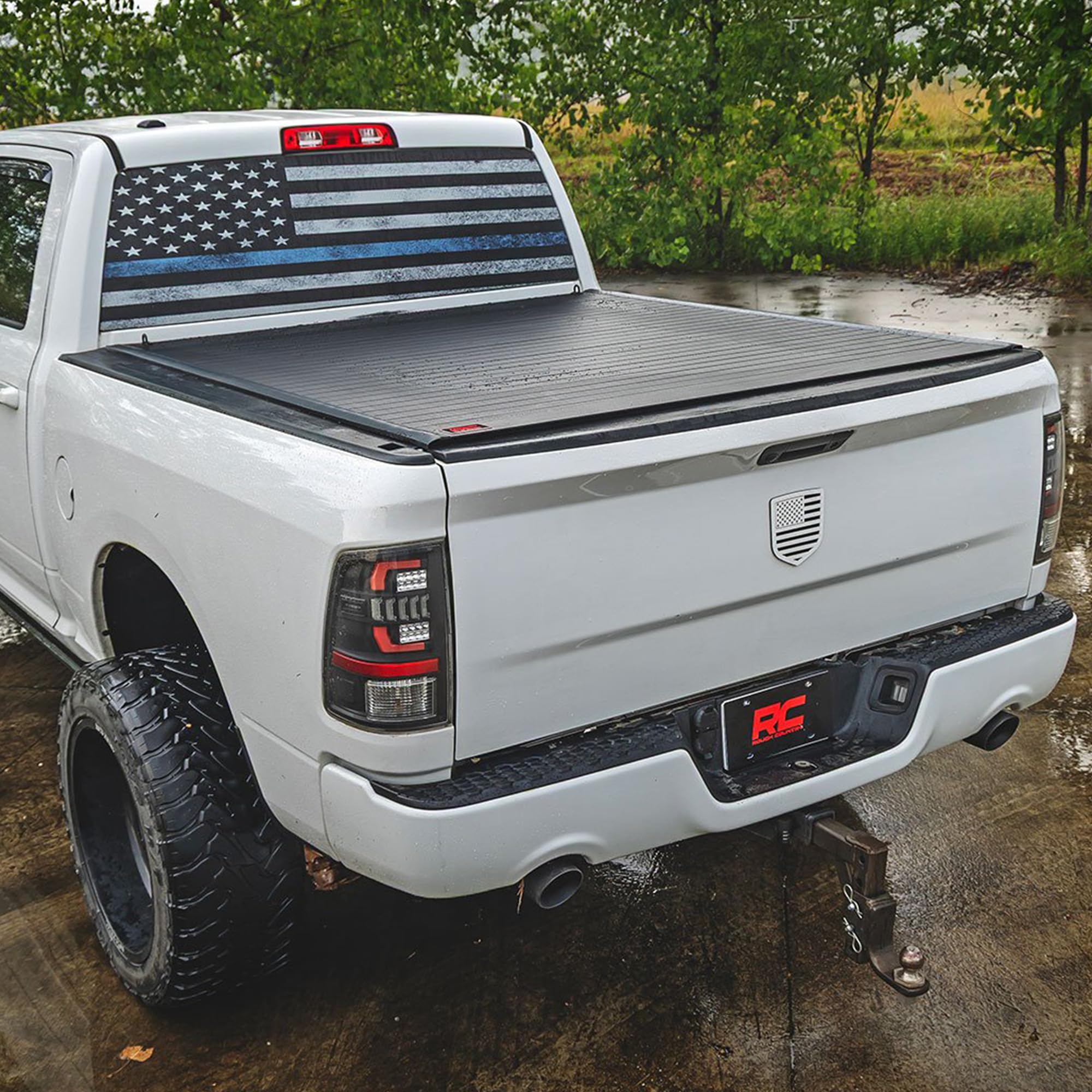 Your truck bed is built for hauling, but without a cover, your cargo is exposed to the elements and prying eyes. Rough Country’s Hard Roll-Up Bed Cover solves that by keeping your gear secure, dry, and protected while adding a sleek, low-profile look. Flush, Low-Profile Design: With a stylish matte black finish and sleek aluminum slats, this cover not only protects but also adds a stealthy, streamlined look to your truck. Quick and Easy Access: Roll up the cover for quick access to your gear, and with a simple cable pull, it unlocks instantly. When you're done, the auto-latching system secures it back in place - quick and hassle-free. Engineered for Strength: With its black powder-coated aluminum frame, this cover resists corrosion and holds up against even the harshest conditions. Built to support up to 600lbs of evenly distributed weight, it’s made to keep going, mile after mile. Easy Installation: Forget the drills! This cover installs with ease using the tools provided. We've also added nylon safety straps with quick-release clips for that extra layer of protection. 5-Year Warranty: We stand behind our gear, so you can trust this bed cover to protect your cargo with a solid 5-year warranty. With easy installation, rugged durability, and the strength to handle the toughest conditions, these truck covers are the ultimate upgrade and addition to your Ram 1500 accessories and Ram 2500 accessories. Equip your ride and hit the trails knowing your gear is safe and secure with our hard roll up truck tonneau covers! Fitment Notes: These truck covers do not fit models equipped with RAMBox cargo management system. Compatible with the 2009–2010 Dodge Ram 1500/1500 TRX and 2500, 2011–2018 Ram 1500, 2019–2024 Ram 1500 Classic, and 2011–2025 Ram 2500 - for models equipped with the 6'4" (76.3") bed only.