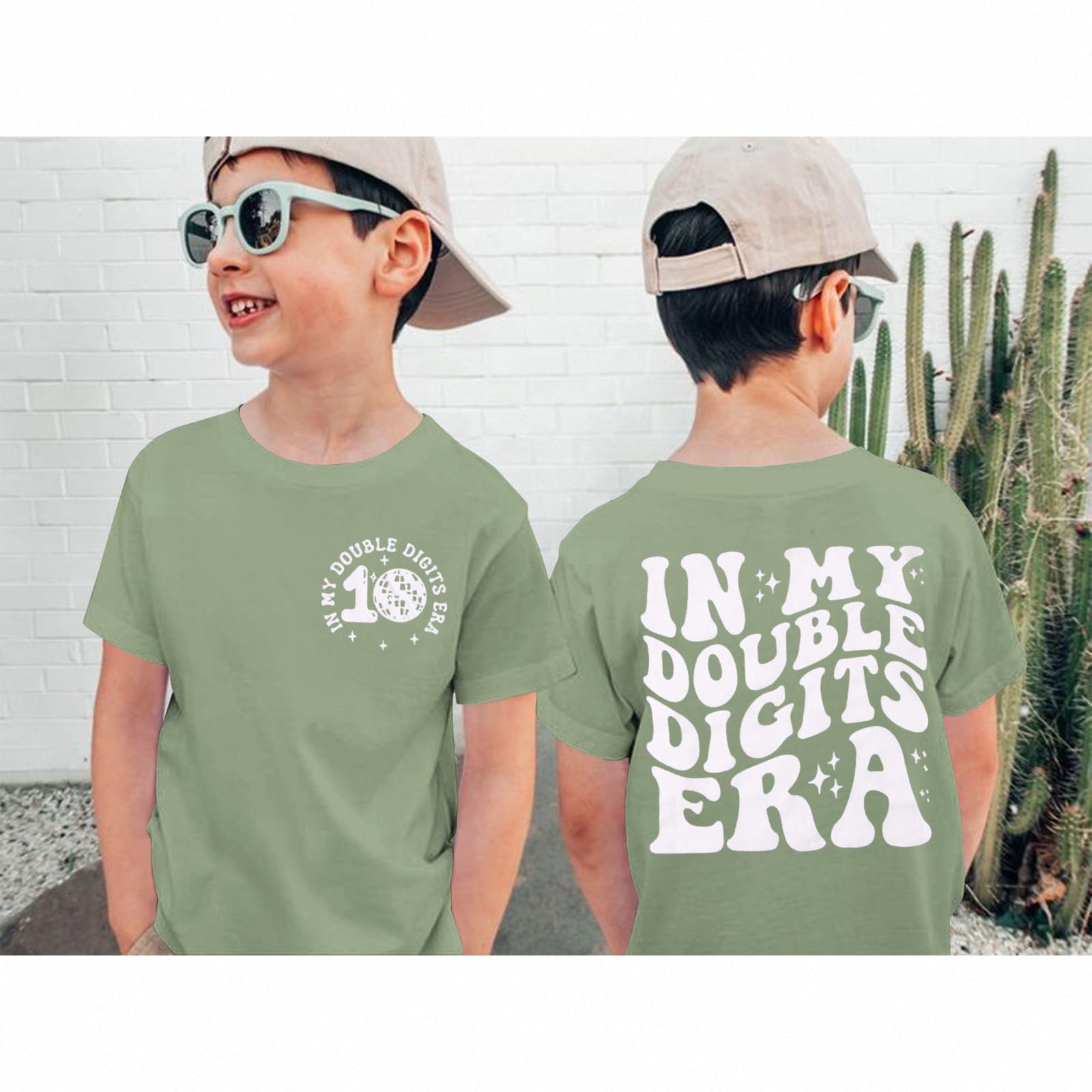 【Size】This funny In my double digits era tops for 10 year-old boy. Number 10 boys birthday shirt, 10th birthday t-shirt boys, in my double digits era short sleeve shirts. the perfect birthday gift shirt for your boys turning 10 birthday party.