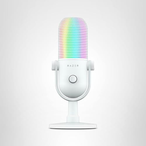 Bring your voice to life with the Razer Seiren V3 Chroma—an RGB USB microphone designed for vibrant streaming and pro-level control. Equipped with stream-reactive lighting powered by Razer Chroma RGB, it enhances your setup with dynamic effects that respond to in-game events, alerts, and emotes. The intuitive tap-to-mute sensor provides instant control, letting you prevent audio mishaps on the fly. Capture crystal-clear sound with the supercardioid condenser mic, designed to reduce background noise while emphasizing your voice. Featuring a digital gain limiter and built-in shock absorber, this mic maintains a steady, clean audio output even during intense moments. With a simple plug-and-play USB design, the Seiren V3 Chroma is ready to go in seconds—ideal for use with Discord, OBS Studio, and XSplit. Tailor your experience further with Razer Synapse for lighting customization, sound adjustments, and stream mix management.