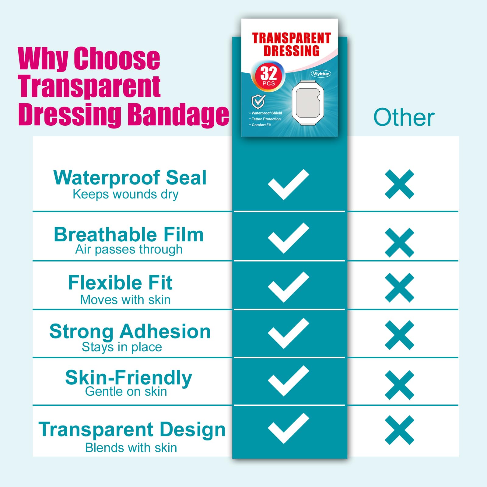 【Transparent Film for Discreet Coverage】 Ultra-thin, clear design blends with all skin tones. Perfect as a tattoo cover up patch or tape, large bandaid alternative, or protective dressing after minor procedures.