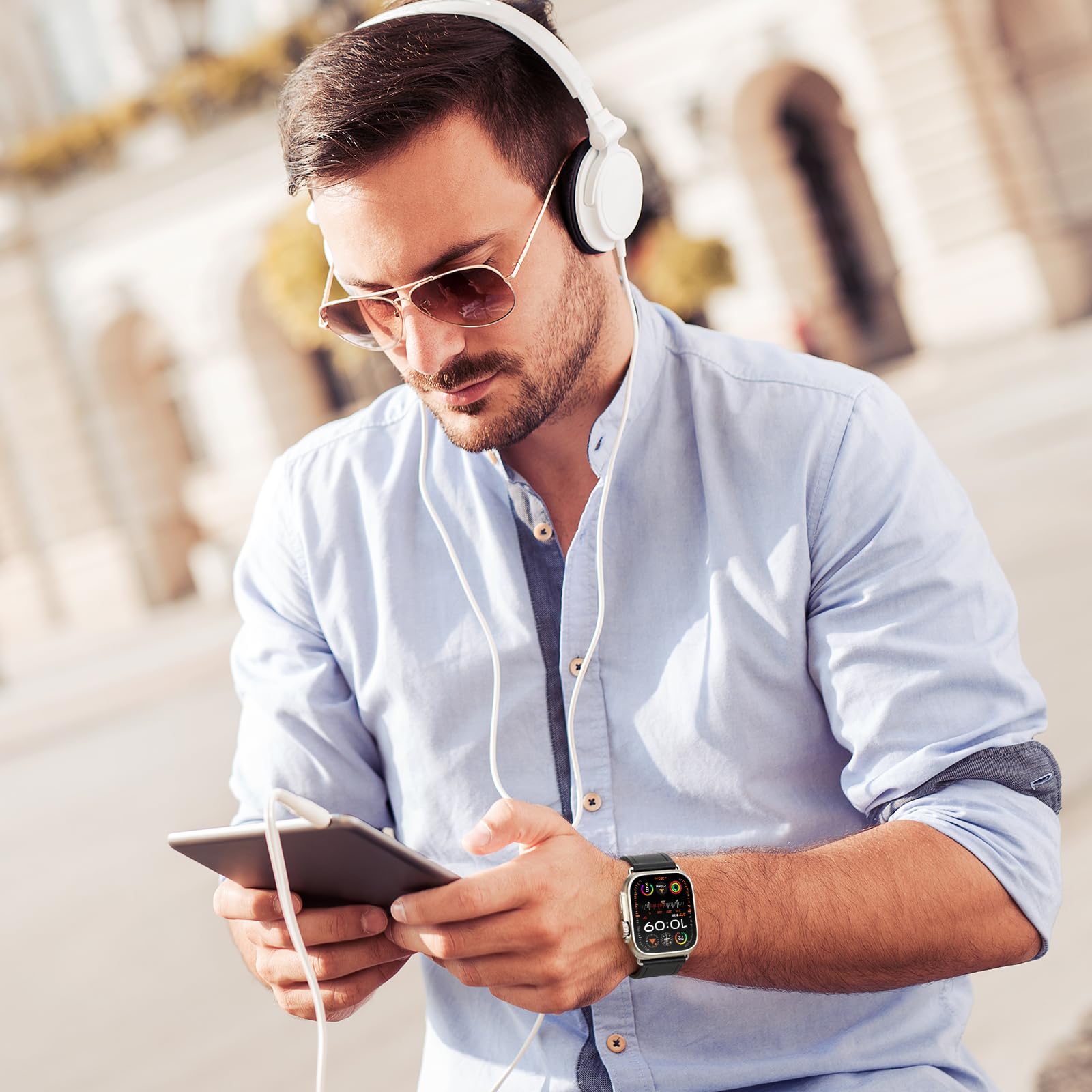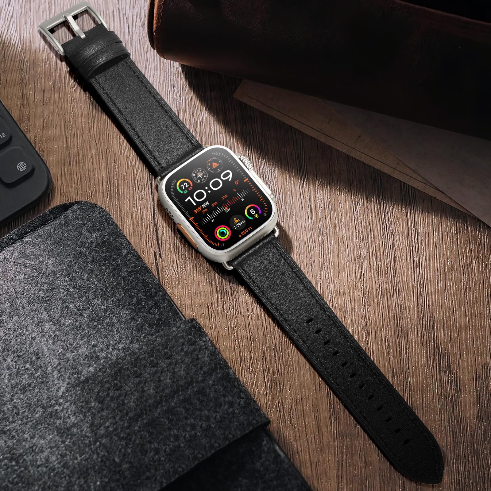Design: OUHENG watch band uses fashionable leather style design with stainless steel buckle, convenient and easy to interchange. The watch band connectors and buckle are compatible with Apple watch Ultra 3/2/1 Series 11/10/9/8/7/6/5/4/3/2/1/SE3/SE2/SE All models. It can be men's or women's, simple but attractive, look fantastic and giving a nice professional look on any occasion.