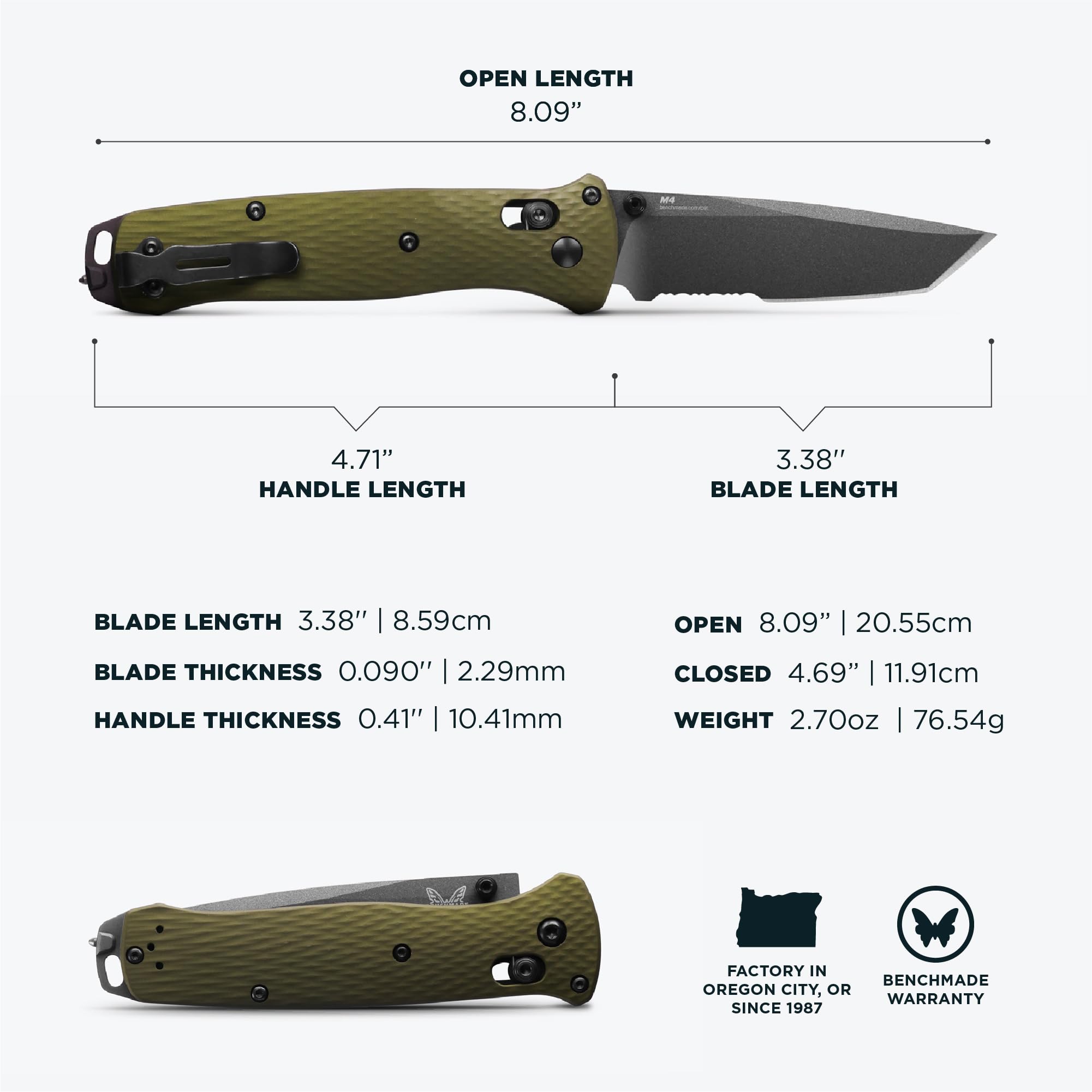 YOURS, FOR LIFE: Benchmade will re-sharpen your knife to a factory edge for free, for the life of the knife. Benchmade LifeSharp services includes cleaning, oiling, adjustments, and re-sharpening.