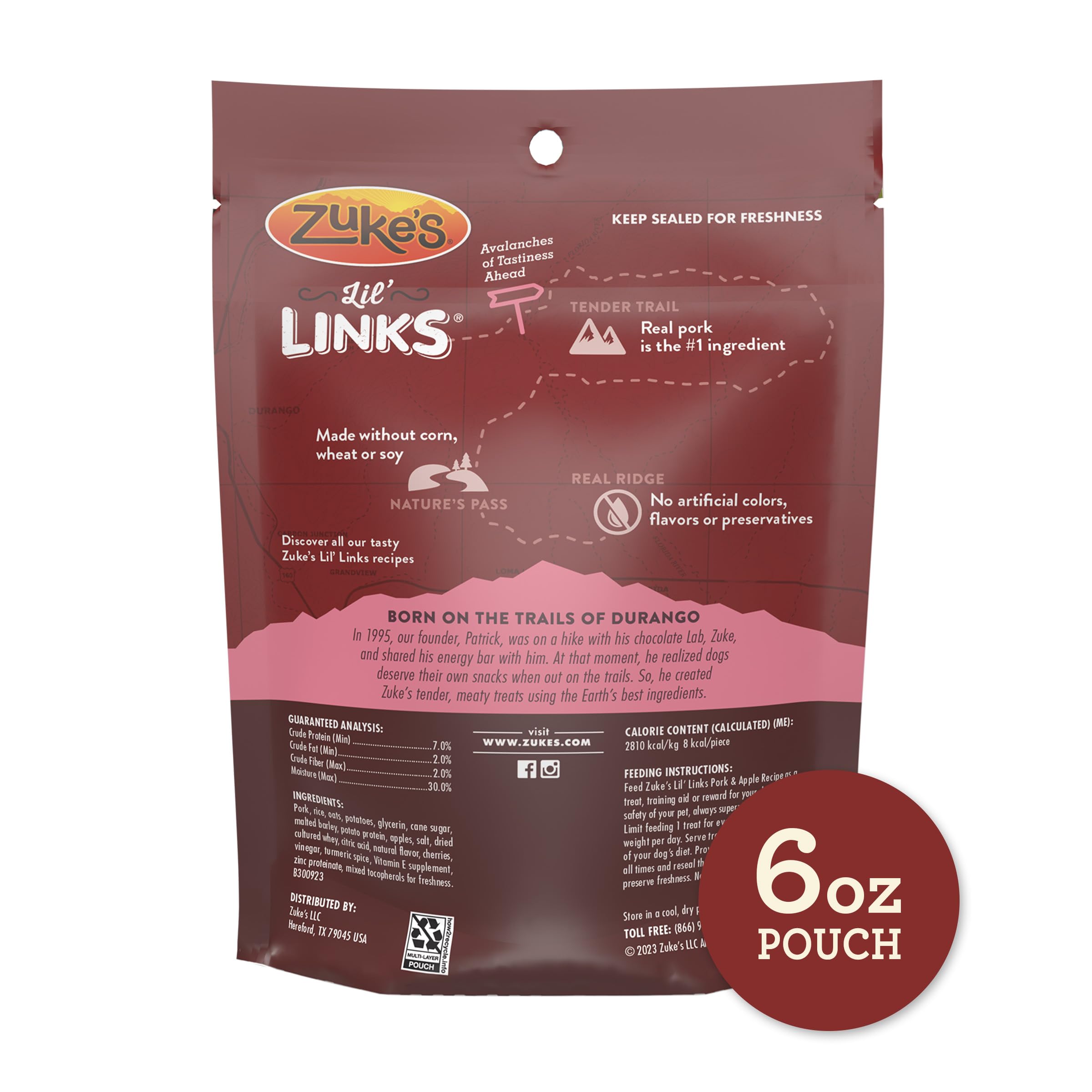 Dogs are just like us; they go on daily adventures and need healthy fuel to keep them going along the way. That’s why every dog owner needs Zuke’s Lil’ Links Dog Treats. These dog snacks are made of high quality, real ingredients dogs love, because what’s good for humans is good for pets. Zuke’s Lil’ Links treats for dogs support their overall well-being while offering them high value dog training treats they crave. Crafted in the USA using the Earth’s best ingredients, Lil’ Links Rabbit and Apple is also packed with cherries and more and is a natural dog treat made with added vitamins and minerals to support your dog’s health. Zuke’s dog treats contain no corn, wheat, soy, artificial flavors, colors, or preservatives and are perfect for long hikes and daily adventures thanks to a resealable pouch that makes these pet treats easy to tote. Use them as dog training treats, or as an on-the-go reward. Make sure to limit to 1 treat per every 5 pounds of body weight per day to feed responsibly. Zuke’s was created in 1995 when our founder, Patrick, was out exploring with his dog, Zuke. Patrick shared an energy bar with Zuke to keep him fueled with a healthy snack for the journey, and thus, the idea of Zuke’s dog treats was born. From park to peak, choose your adventure with Zuke’s.