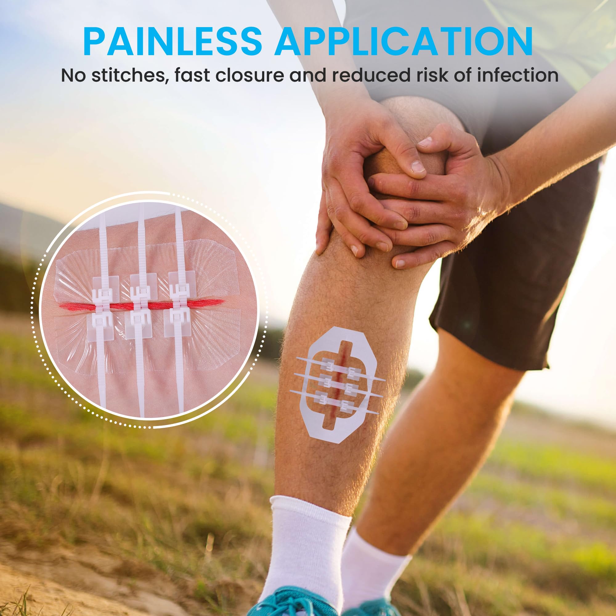 Without Stitches: No sutures are required—simply apply the Butterfly Bandages for a quick, painless alternative to traditional stitches. The steri strips minimizes secondary trauma and scarring, while improving comfort during recovery and removal