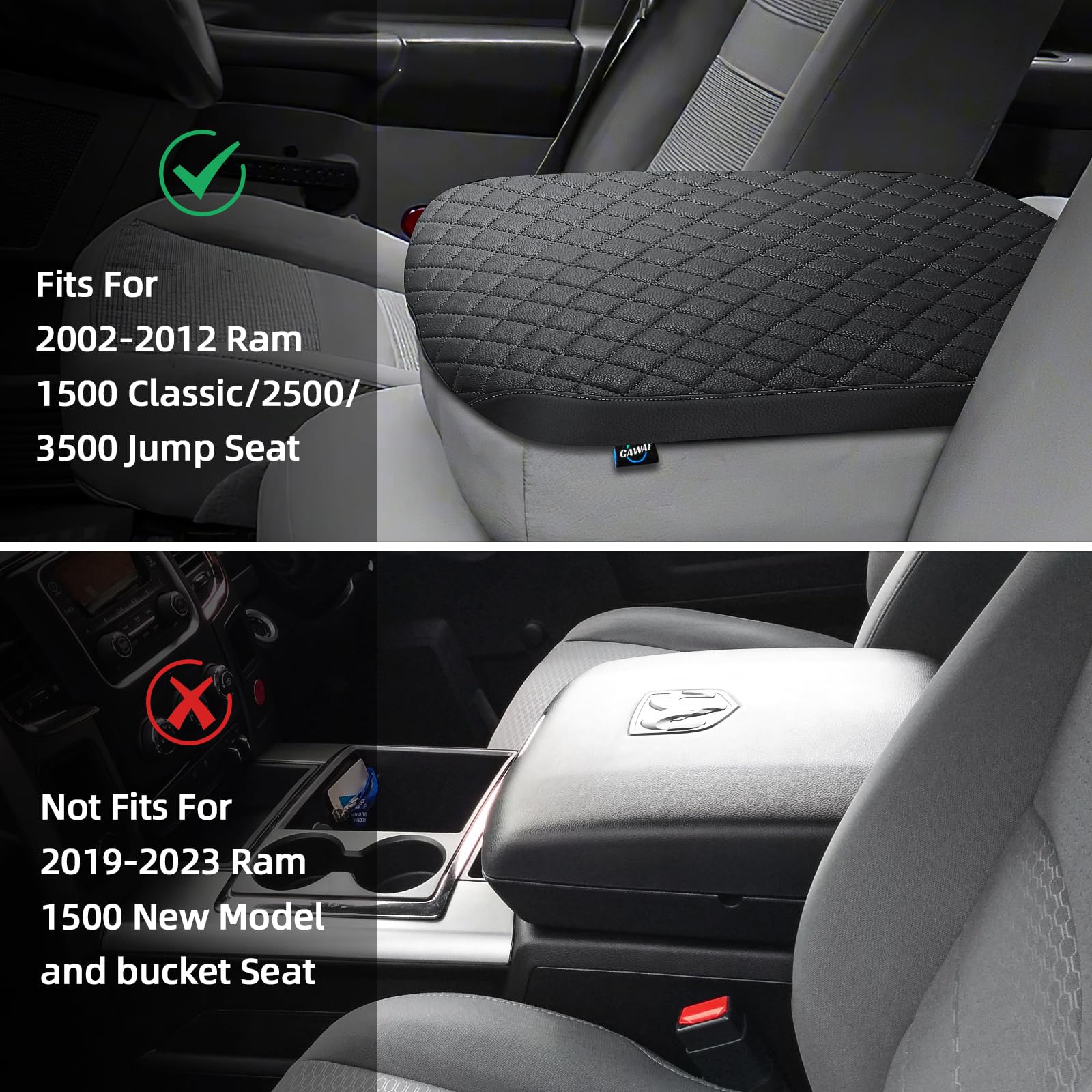 【Custom Fit Design】Specifically designed for 2002 2003 2004 2005 2006 2007 2008 2009 2010 2011 2012 Ram 1500 2500 3500 bench/jump seat(NOT FIT for bucket console), Jump seat console cover perfectly fits the vehicle’s center armrest. Please confirm your vehicle model before purchase